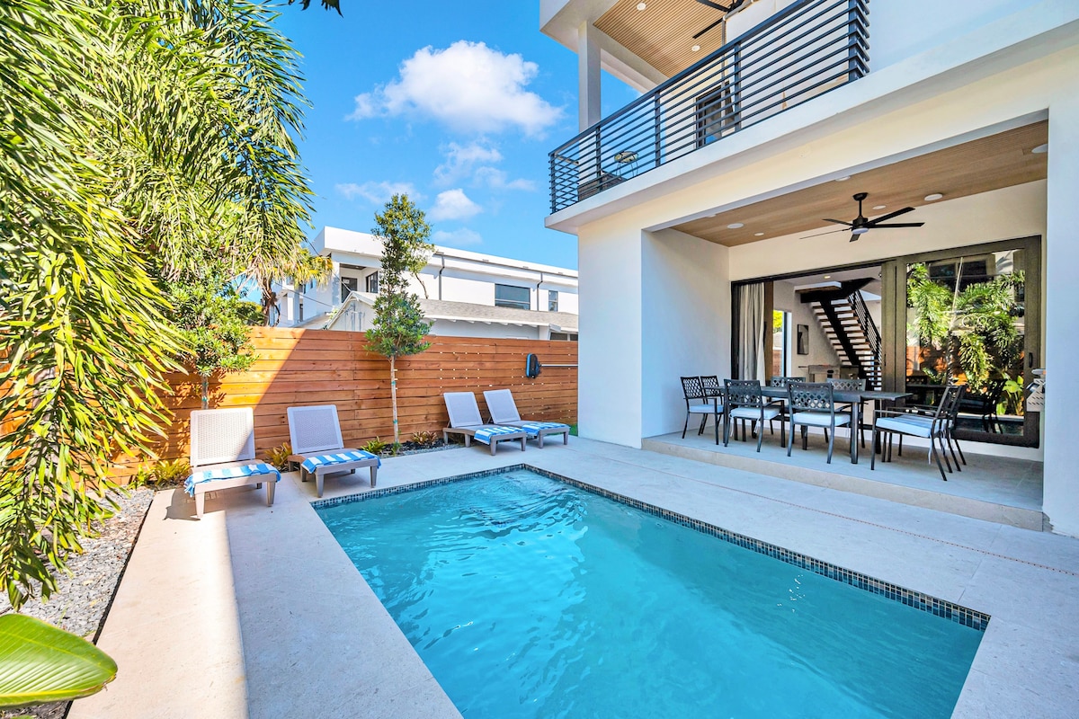 Escape to this modern Fort Lauderdale villa just steps from Las Olas Blvd. Perfect for families or friends, it blends walkable luxury with comfort—lounge by the heated pool, grill dinner, or unwind on the balcony after exploring shops, dining, and the beach nearby. “The house was immaculate and walkable to Las Olas—perfect stay!” – Casey HIGHLIGHTS ✓ Heated pool, hot tub & BBQ for lounging ✓ Walk to Las Olas dining, shops & nightlife ✓ Spacious modern villa ideal for groups or families