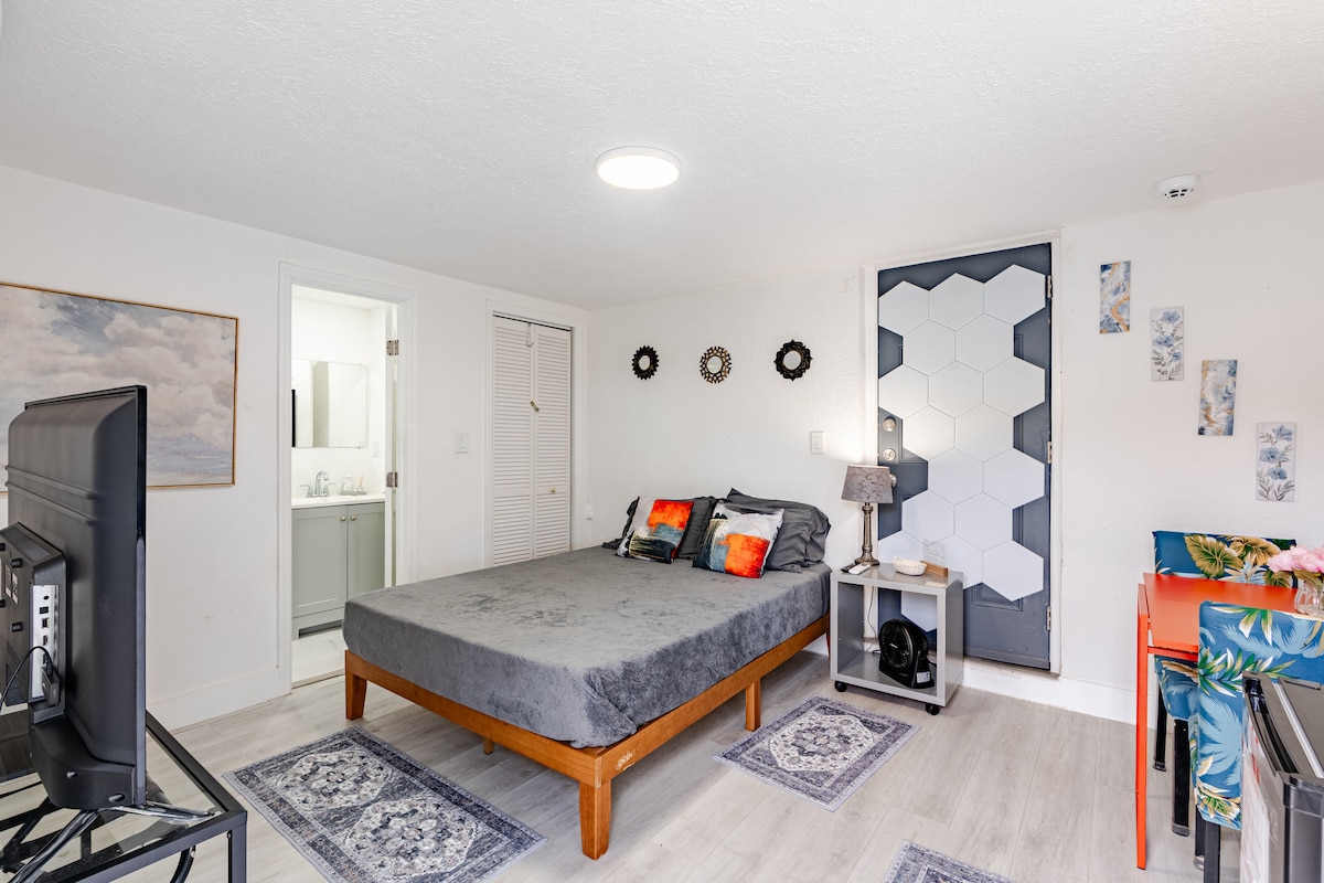 Escape to our vibrant retro chic style suite in Fort Lauderdale, ideal for beach lovers and explorers! With a pool view, cozy bedroom, and eclectic amenities, it's perfect for families or friends seeking a blend of comfort and style. Enjoy nearby beaches, a shared pool, and a charming outdoor area. Our unique space offers the warmth of home with the convenience of an ideal location. Ideal for those who appreciate tropical charm and a relaxed atmosphere. Near Port Everglades, airport & downtown.
