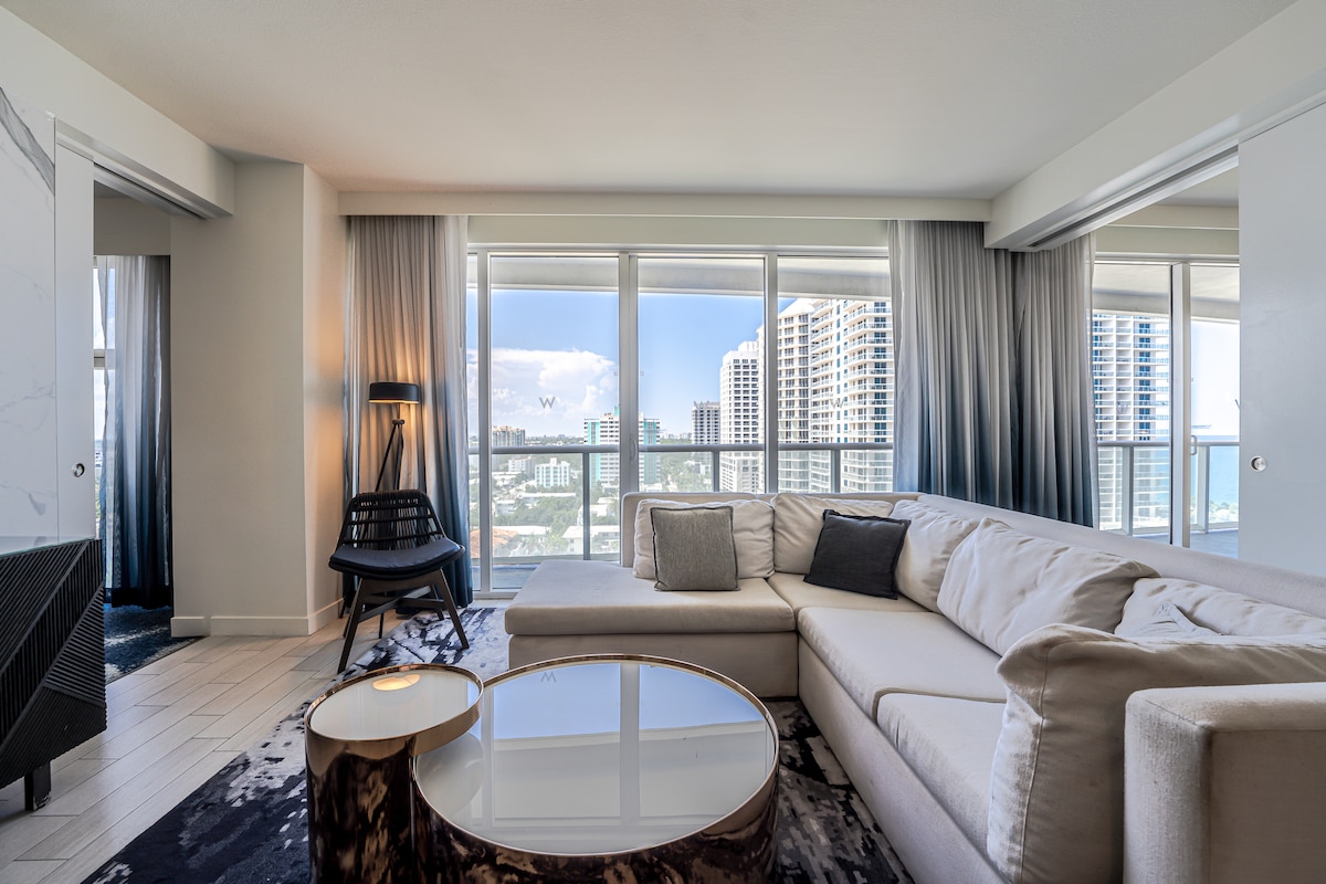 12th-floor luxury condo at the W Residence. Fully furnished 2-bed/2-bath with sweeping 180° city & Intracoastal views plus a beautiful side-ocean outlook from the balcony and living room. Modern kitchen with top appliances, in-unit washer/dryer. Resort-style amenities: beachside service, pools, jacuzzi, spa, fitness center & Living Room Bar. Dine at Steak 954, El Vez & Sobe Vegan just an elevator ride away. Steps to W Water Taxi, shops, nightlife & the beach.