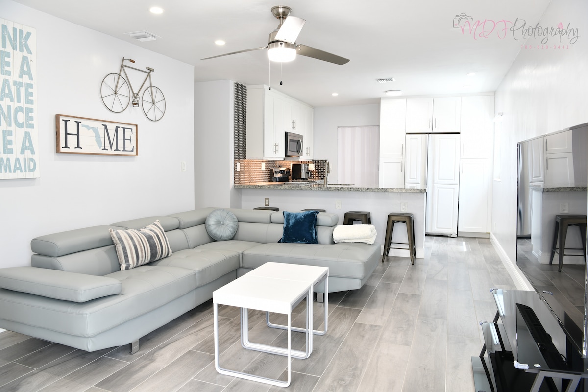 This gorgeous newly renovated home is every vacationer's dream. This location can't be beaten. We are close to the beaches, restaurants, Galleria Mall, downtown Las Olas, and there is a Free Shuttle!! Enjoy our beautiful backyard oasis with a private pool & heated jacuzzi. This house is high-end with a chef's kitchen, top-of-the-line appliances such as a Sub-zero refrigerator with double freezers, Wolf appliances, and 4 Samsung Plus flat TVs with Netflix and other streaming options available.