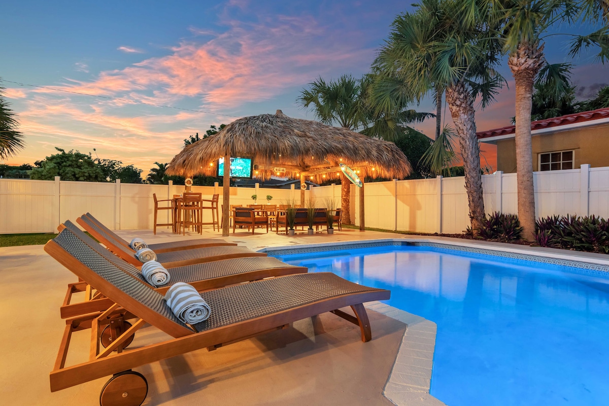 AMAZING LOCATION! 1 minute to the FLL airport - 8 minutes to the beach. Perfect vacation amenities: - Incredible Outdoor Tiki Hut w/ lounge area, outdoor dining table & 50" HD TV! - Huge Heated Pool w/ Pool basket-ball! - Ultra comfortable indoor lounge area w/ 55" HD TV - 4 Bedrooms w/ a master bedroom suite w/ 2 showers! - High end appliances (Fridge, washer, dryer) - High Speed Xfinity Wifi Interior designed and furnished professionally - The pictures are exactly like the house looks!