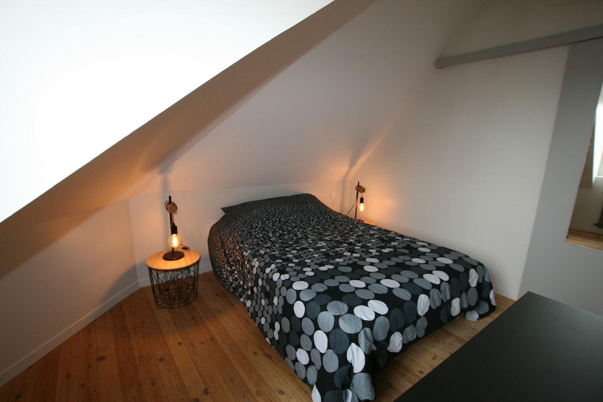 Maison de pêcheurs typique dans le centre des cordiers. Elle possède une chambre séparée avec lit double et télé, salle de bain avec douche, pièce à vivre avec une chauffeuse se transformant en un lit d'une personne, un canapé lit, une cuisine et 2 wc. On vous propose des endroits pour stationner gratuitement. Café, thé, épices, alèses jetables, produits d'entretien sont à votre disposition. Le linge de lit et de toilette sont fournis. Animaux non acceptés.