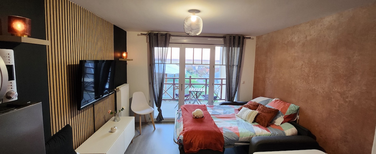 Bienvenue chez "Esprit Baie" notre charmant studio neuf de 28m² situé au cœur de Saint Valery à 300m du centre ville et de la gare du train à vapeur , offrant une vue imprenable sur la baie MEUBLE DU TOURISME ** Inclus : Linge(draps/serviettes)+place de parking privée+2 vélos vtt/vtc Situé au 1er étage, avec ascenseur, d'une résidence très récemment construite Une place de stationnement privative est à votre disposition, ainsi que 2 vélos. DRAPS, TORCHONS, SERVIETTES de bain sont fournis