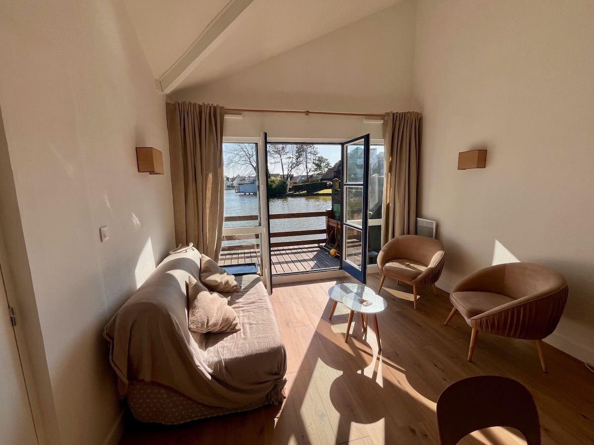 Situé sur la place principale de l’écovillage Pierre et Vacances, village Belle Dune, nous vous proposons notre appartement de 35m². Celui-ci est situé au premier étage avec une vue exceptionnelle sur le lac L’appartement est composé : D’un hall d’entrée D’une cabine avec lits superposés D’une salle de bain WC D’un séjour avec cuisine ouverte, avec canapé-lit 2 places 2 balcons de 7m² donnant sur l'espace aquatique et sur le lac La piscine Aquaclub est ouverte! Entrées non comprises.