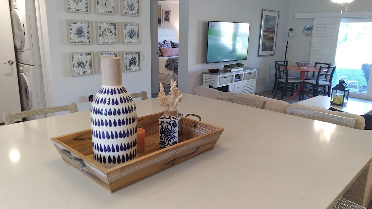Newly renovated 2 bedroom 2 bath condo for your dream getaway. Boat storage and ramp available. This is a 2nd floor unit just steps to the beautiful Crescent Beach, Matanzas Inlet, pool, tennis and pickleball courts. Enjoy the sunset from the balcony with a peek view of the inlet. Just bring your swimsuit. Condo includes beach towels, chairs, boogie and skim boards, pickeball and tennis rackets,. You'll be just a short drive from historic St. Augustine with it's many attractions.