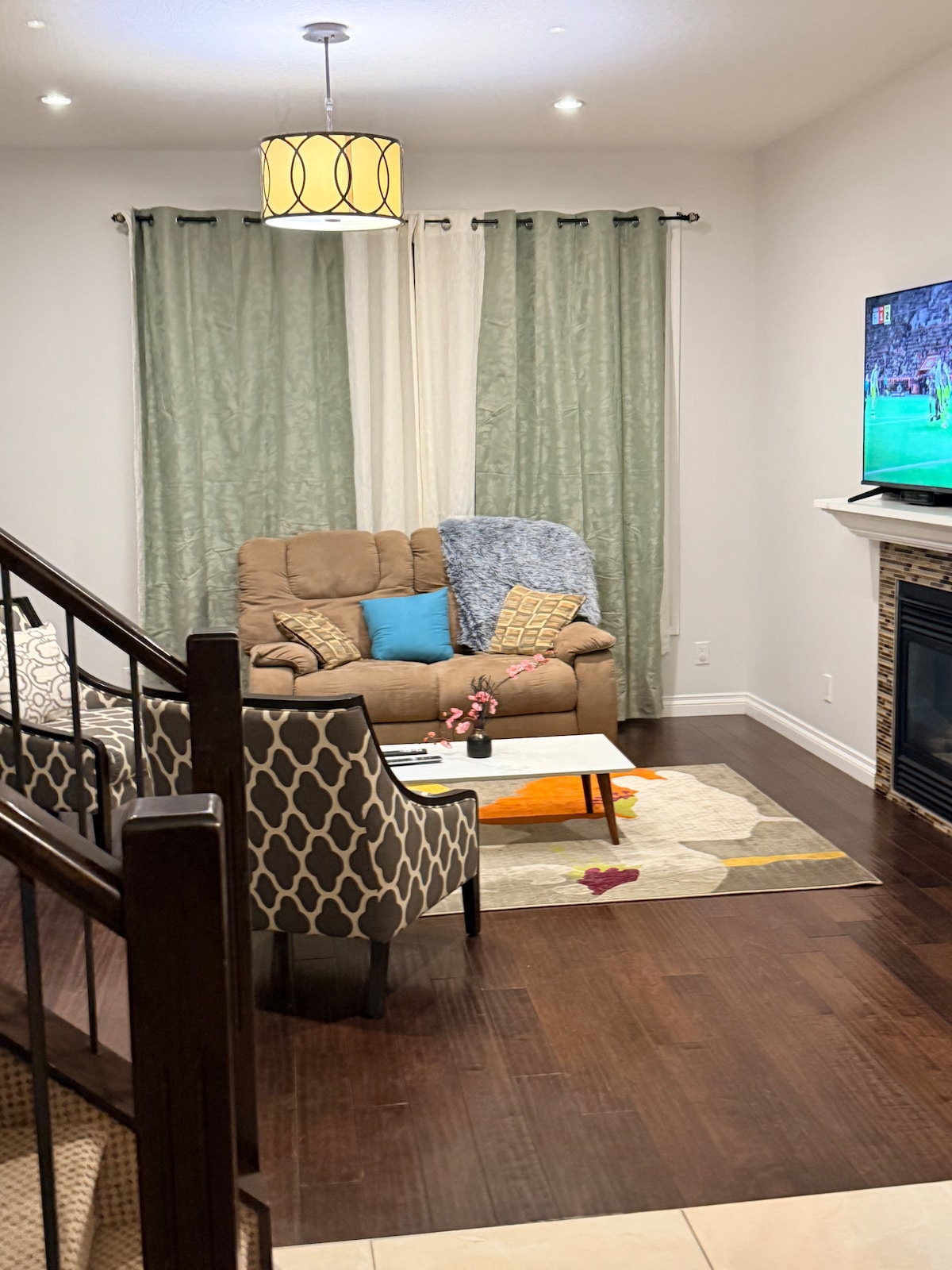 Air-condition with Fully furnished luxury basement with separate entrance and private, two car parking space. Newly renovated with all new appliances, this basement suite features high speed internet, a cozy living room, and three full bedrooms. We have all your basic breakfast needs such as eggs bread milk etc available. Thank you !! In summer days patio is ready to enjoy . New BBQ and with new patio set . Feel free to use this area anytime.
