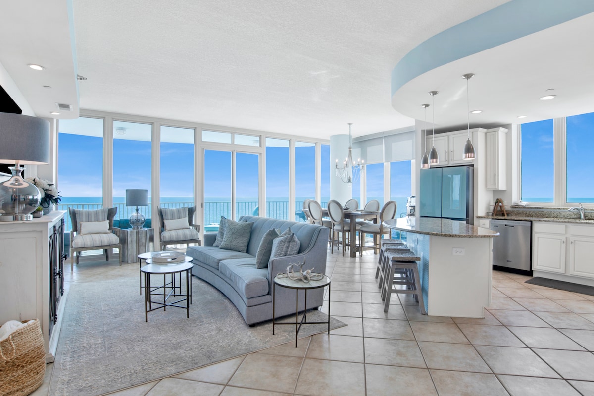 Family friendly DIRECT Beach front condo with great views in every direction of the sugar white beach, natural sand dunes, & beautiful landscaping. From the private balcony you can watch the majestic sun rise & the sunset. Within just a few minutes are many amenities for all ages including outdoor pools, basketball & tennis. After a fun day prepare to make a delicious dinner in the well appointed kitchen, relax with the cheerful decor, large TVs & plenty of space for the whole family.