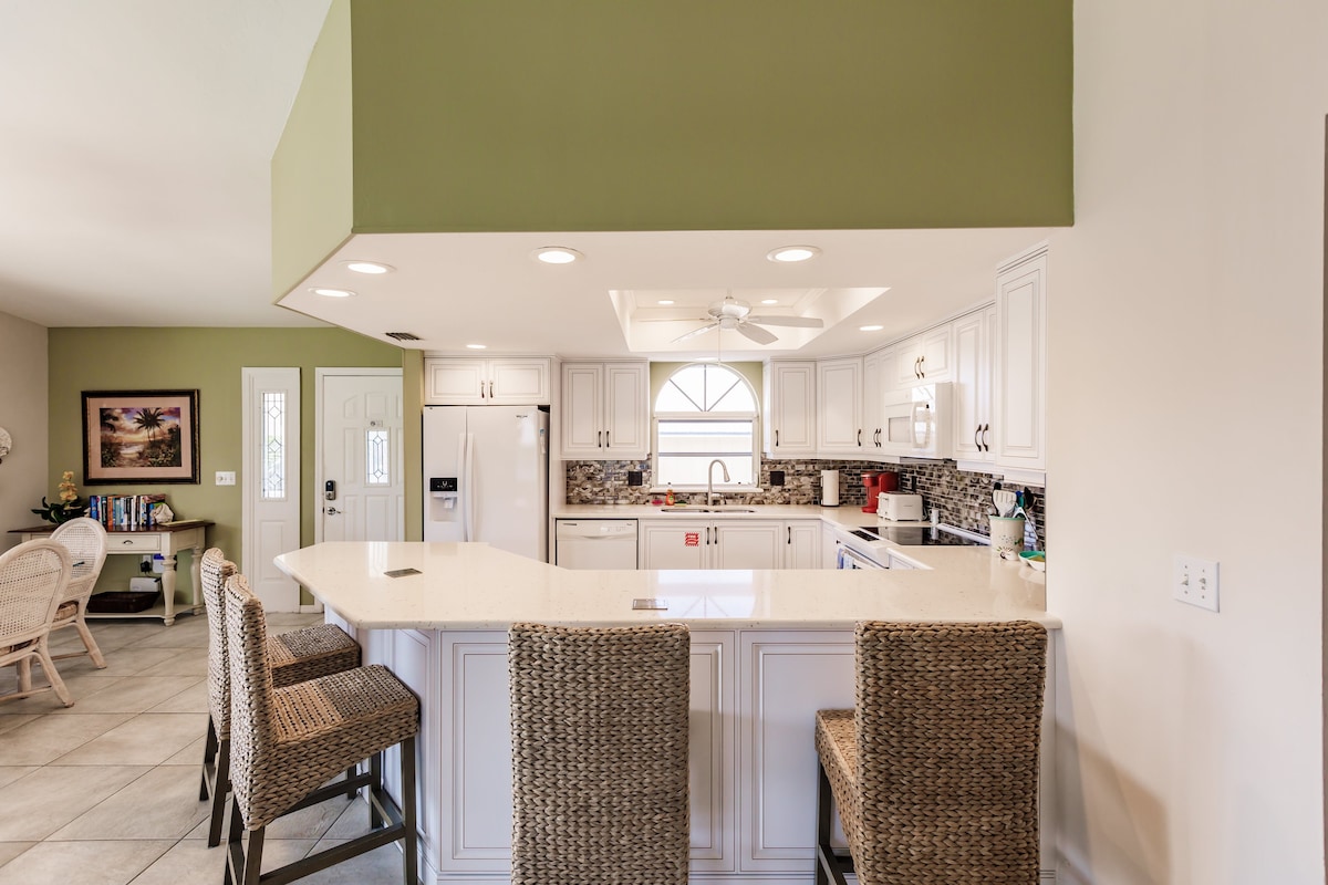 Recently updated heated pool home backing to a golf course with private back yard. It has a covered patio area with new furniture and outdoor grill. Both bedrooms have televisions and super comfy pillows / linens. The main area has a coffee/tea bar and island in the kitchen. The garage has a brand new washer/dryer with the latest technology. Located in a great residential neighborhood surrounded by shopping and restaurants. 20 minutes to the beaches or downtown Ft. Myers.