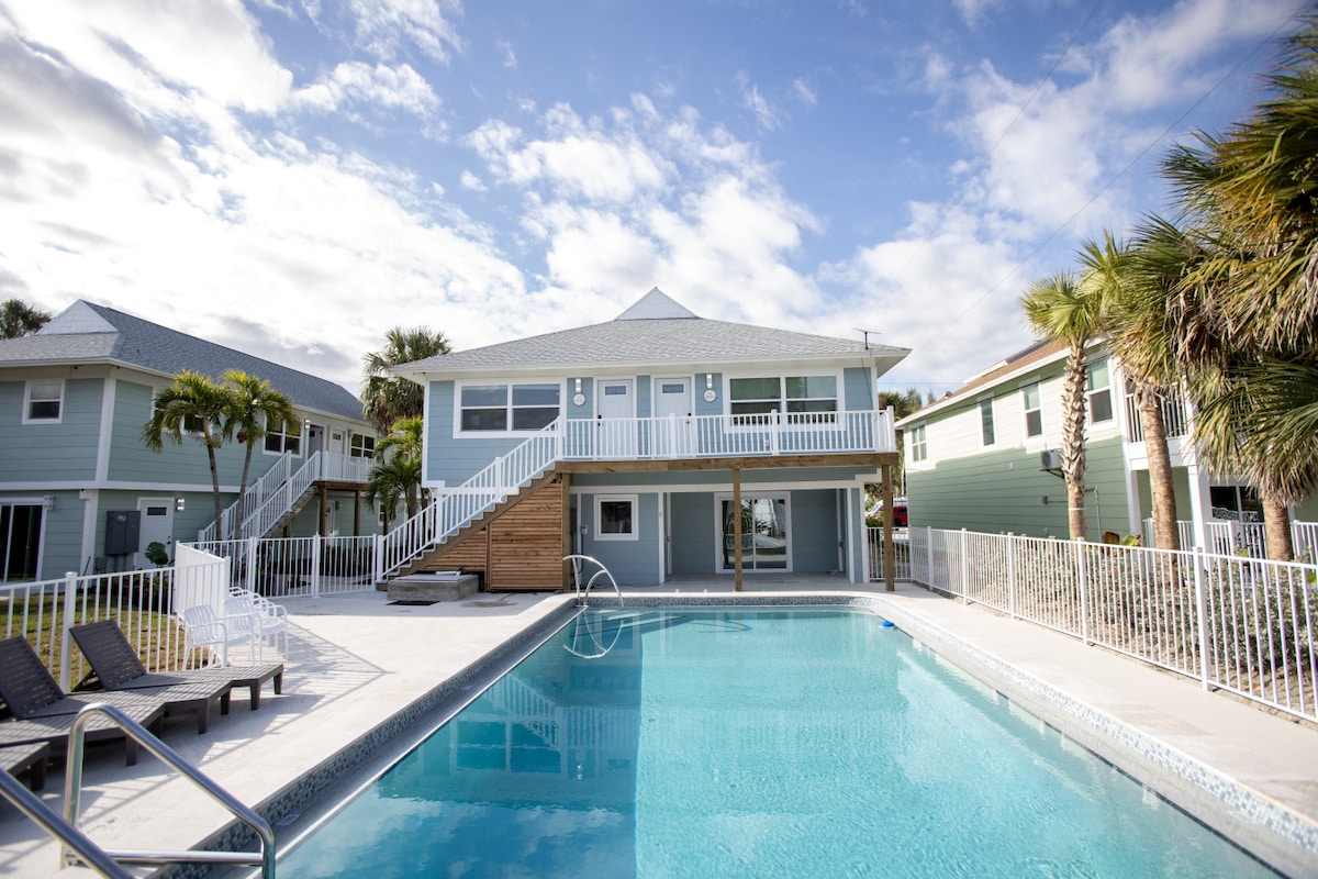 Stay just 600 ft from the beach and a 10-min walk to downtown Fort Myers Beach, with bars and restaurants like Mr. Waves Island Bar. This cozy bungalow sleeps 4 with 2 queen beds, a full kitchen, and a luxurious shower in the full bathroom. Enjoy the patio, grill-ready back porch, and a large garden perfect for outdoor games. We provide beach chairs, umbrella, cooler, and towels—everything you need for a perfect beach day.