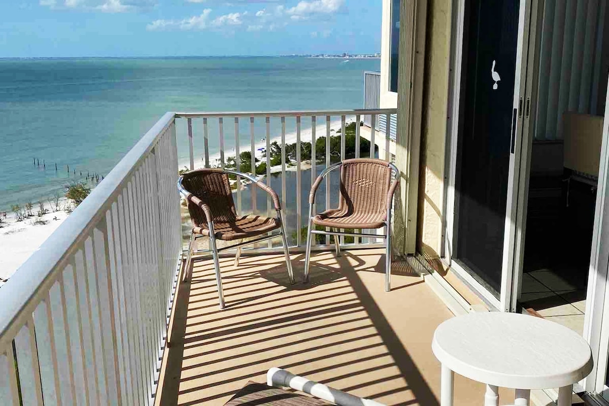 BEACHES ARE OPEN! Beautiful Views, large unit, Enjoy the sun, beach, and excitement of Florida. Lovers Key State Park, beautiful beaches, hiking & biking trails, Ft Myers Beach, white sand, many activities. Views of the gulf & bay area. Exercise room, wifi, great swimming pool- the beaches & trails you come to Florida for. Ft Myers beach has the white sand you think of when visiting Florida. The Gulf Coast Beach, and Lovers Key State Park are there for your enjoyment. Great place for Memories