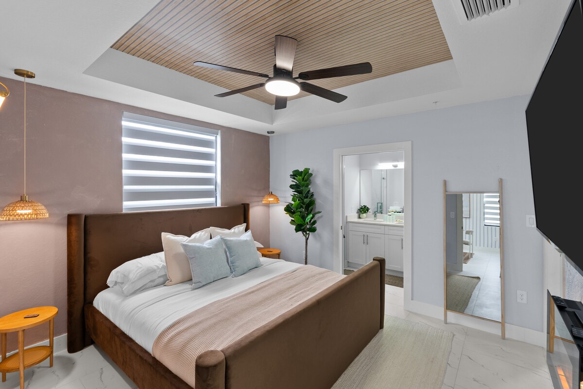 Welcome to The Stillness Suite, your quiet escape in the heart of Fort Myers. This serene and cozy private room features a separate entrance, spacious King sized bed, clean bathroom, and includes homey amenities so you feel right at home. You’ll be in the perfect location to shop, dine, and enjoy the nightlife of Downtown Ft. Myers or take a short trip and enjoy our Gulf Coast beaches. Whether on a business trip or traveling as a couple, our private suite will fit your needs perfectly.