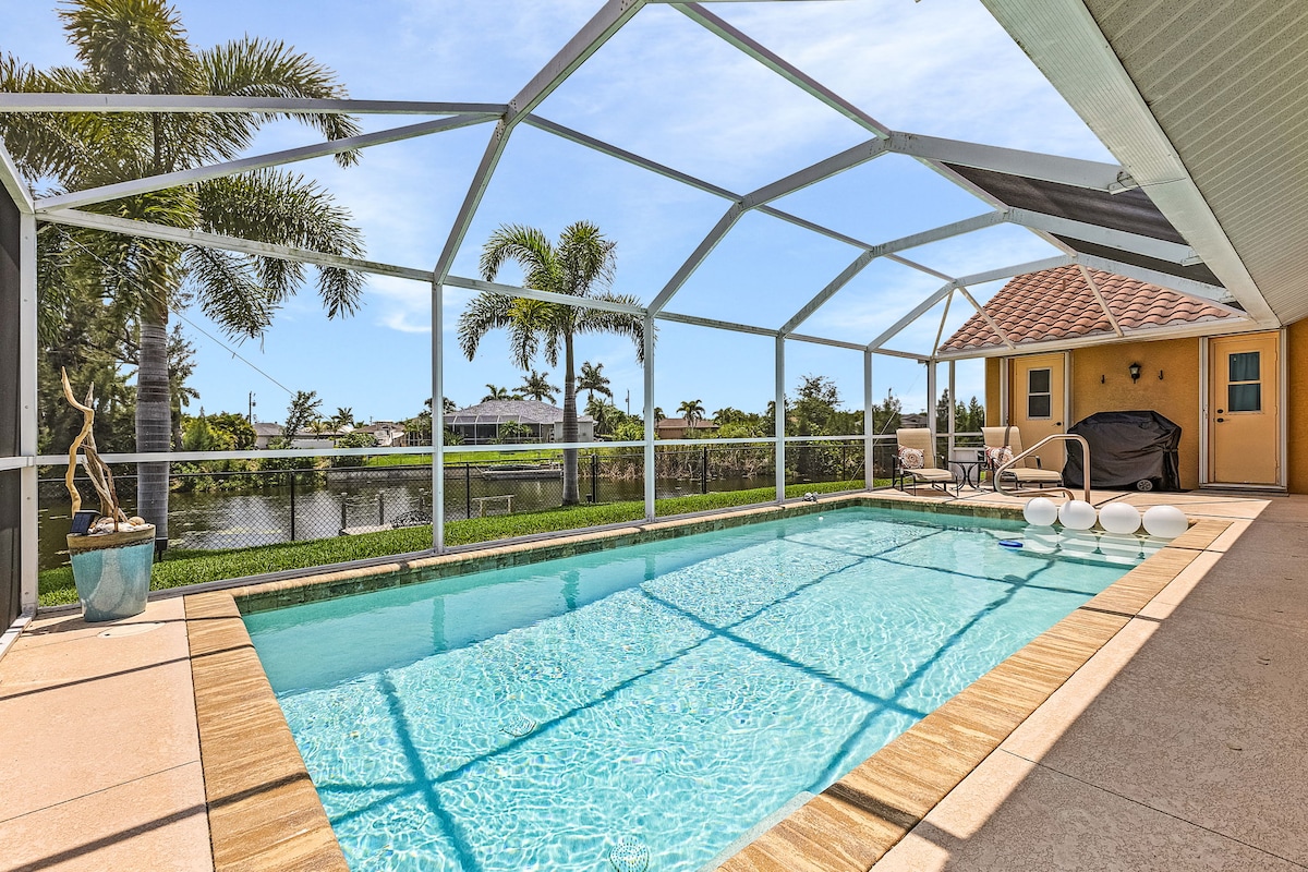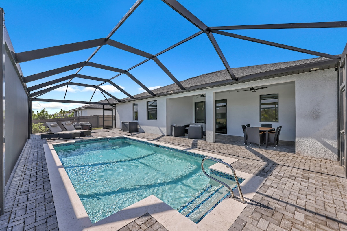 Unwind Cape Coral welcomes you to sunny southwest Florida, close to magnificent beaches, fishing, shelling, Minnesota Twins Spring Training & much more. Come enjoy this new construction home with heated pool, Kayaks, heated and cooled game room (PlayStation 5), gulf access - salt water canal, 4k oled tv's & many more refreshing amenities. You will love this clean & bright home with lovely décor. Located in the highly sought after Pelican neighborhood of Southwest Cape Coral!