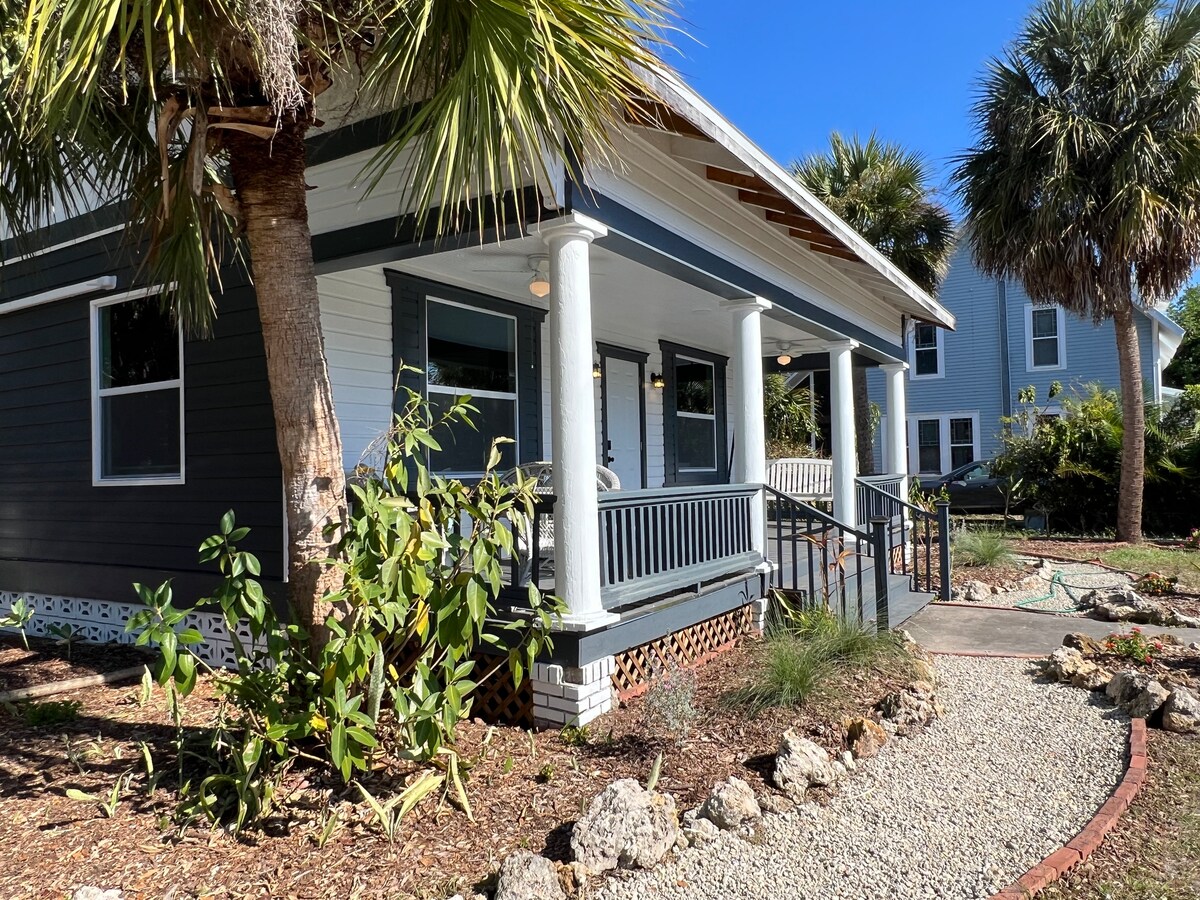 Porch Light & Pines is a home inspired by a life well traveled. It was once owned by a Dutch flight attendant who spent decades exploring the world & bringing that spirit of warmth & curiosity back home. Today, it is lovingly remodeled by a Native & German couple, & invites guests to slow down, sip coffee on 1 of the 3 porches, including a screened sunroom, & relax beneath Palms & Pines. A peaceful retreat rooted in welcome to all who travel. Located 5 mins from downtown & the River District.