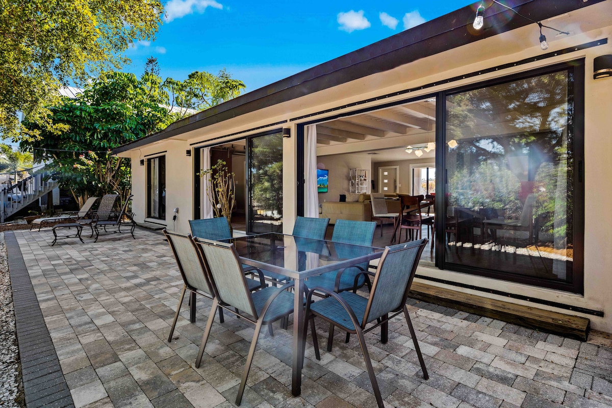 A renovated mid century modern house with natural peaceful views out of every window and slider. No detail spared, as it was going to be our forever home. Located on an ocean access canal, extremely safe, quaint and friendly neighborhood, just off 41. The backyard has a large shaded sitting area with a gas grill and fire pit. The dock hangs over the water with seating and swim ladder. 2 tandem kayaks, fishing rods & tackle, adult & children’s bicycles, beach chairs, and so much more.