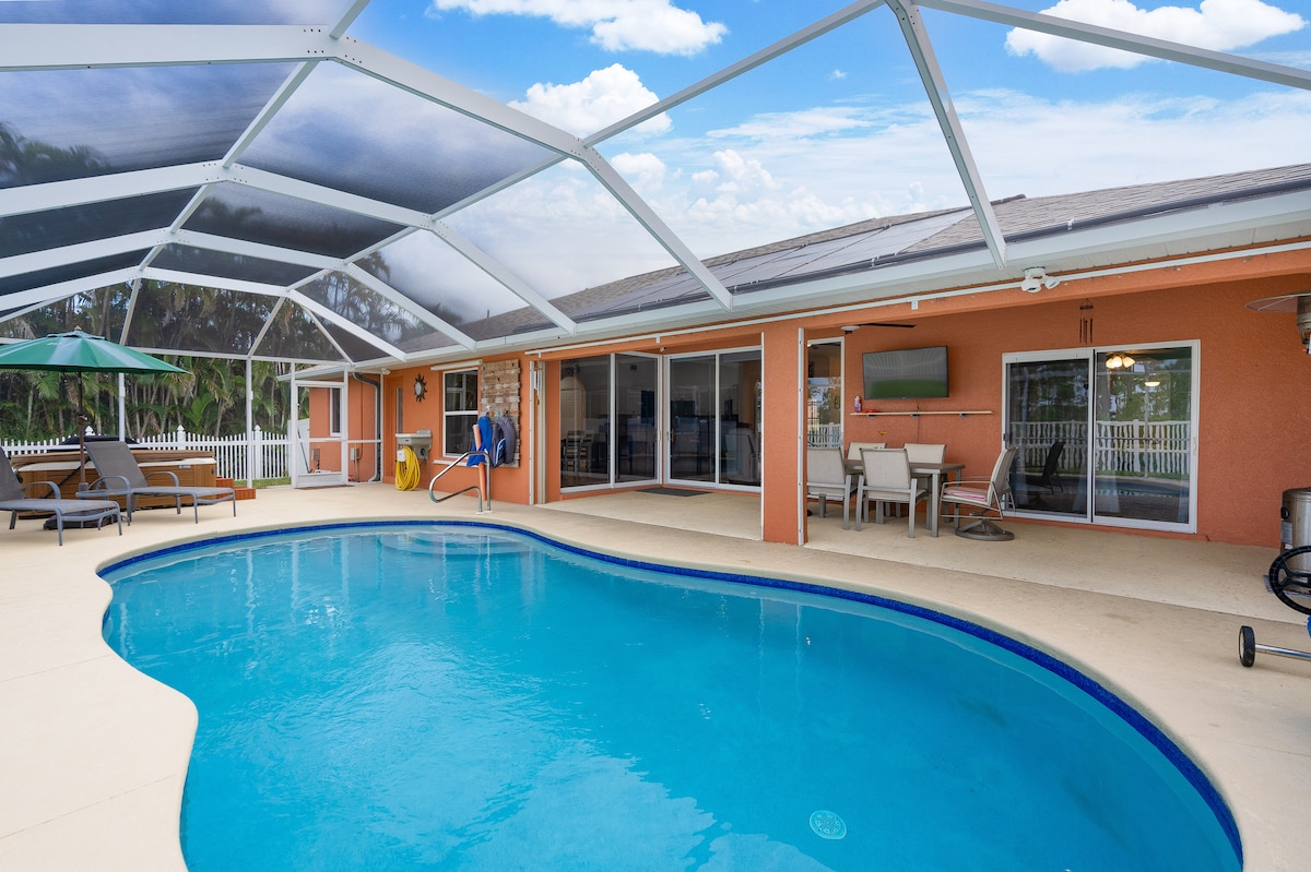 Retreat to paradise in this extra clean and beautifully renovated home centralized to all major Southwest Florida attractions. Splash and play in your private, year-round heated pool or relax and unwind in the bubbles of the jacuzzi. Heating included in price! Less than a 10 minute drive gets you to RSW airport, tons of excellent restaurants, three supermarkets and 4 major shopping malls.