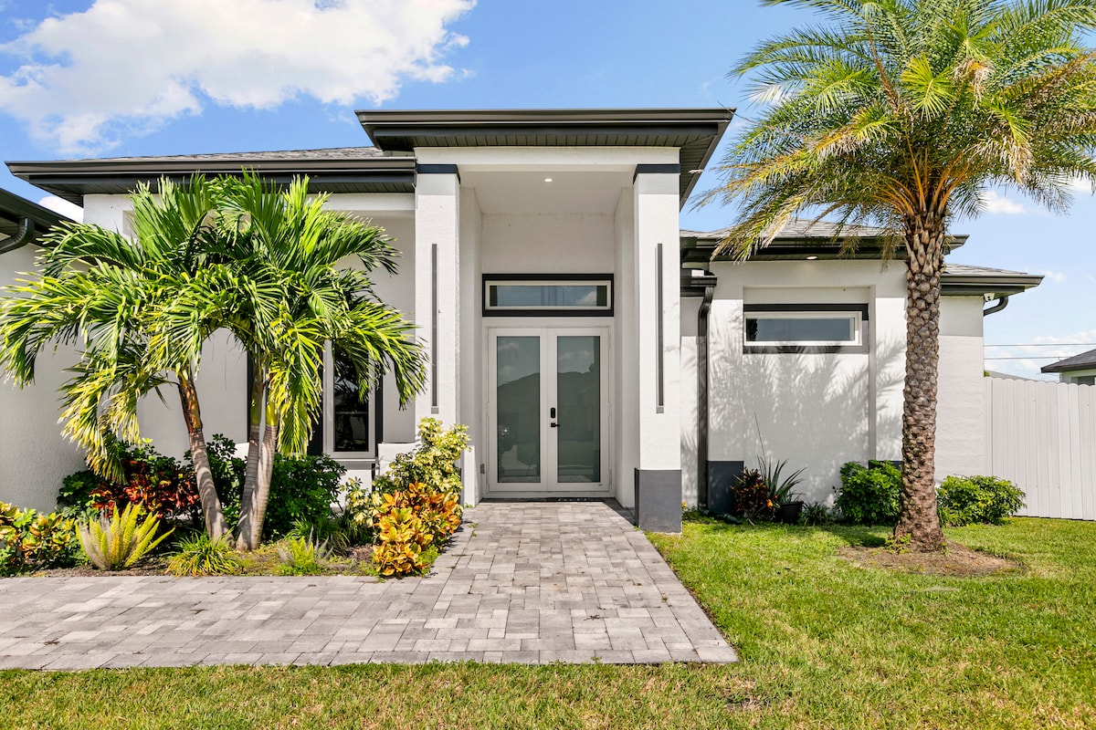 This elegant spacious 3 Bedroom + Den, 3 Bathroom house with split floor plan and large living room will truly make you feel home! High ceilings, a lot of natural light, large rooms, amazing Florida canal view, large heated pool. Fully remodeled in 2017 and feels like new. Location is amazing, close to Marina, Cape Harbour, restaurants. Excellent, beautiful and safe neighborhood. This home is perfect for your vacation!