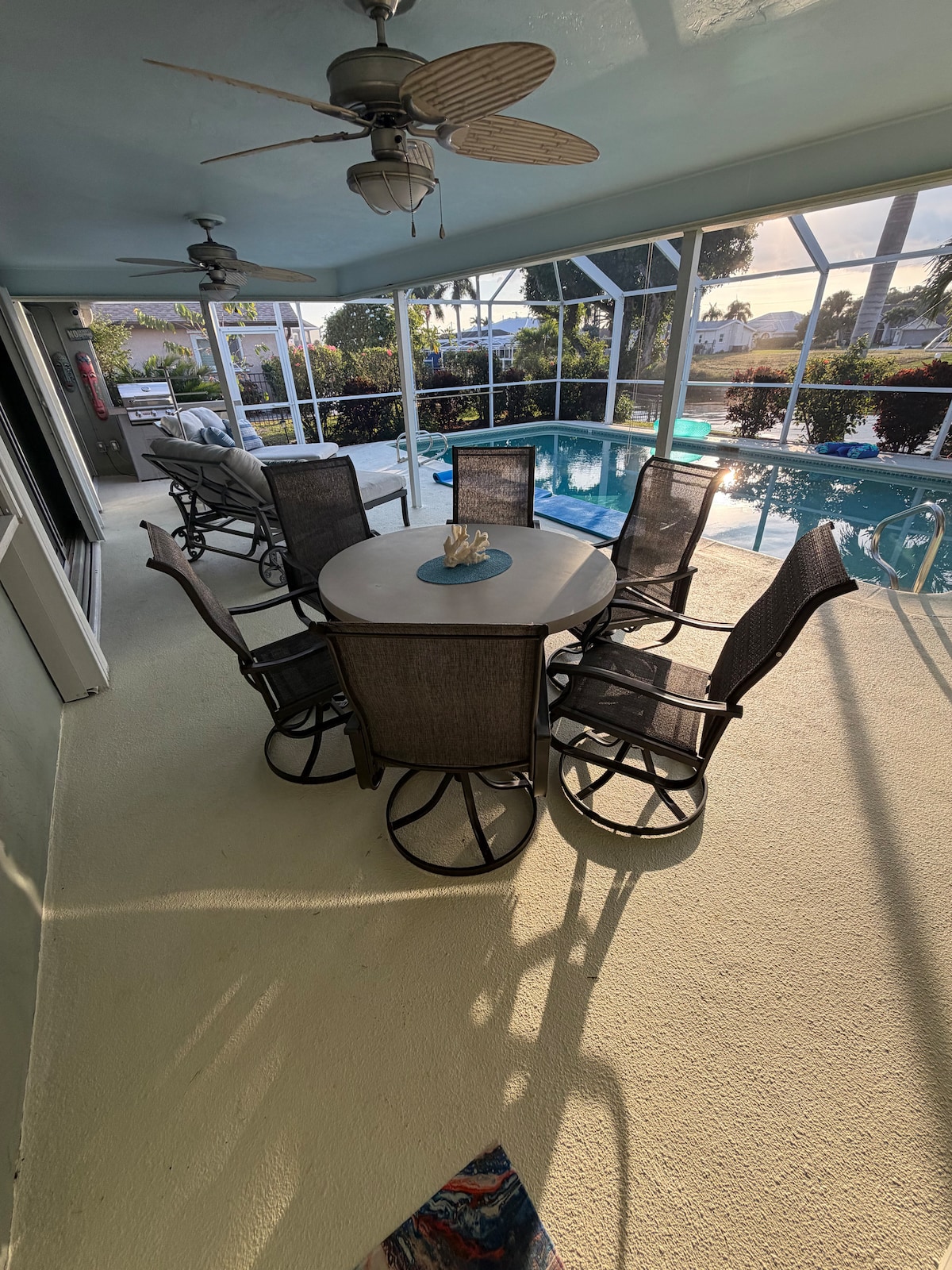 Enjoy the best of the Cape Coral Yacht Club neighborhood. We offer beautifully restored Terrazzo floors along with all new cabinetry, appliances and furniture. The interior of the house has been greatly improved since Hurricane Ian. The lanai, pool and waterfront offer you serene splendor and beauty that you will not want to leave. We provide the most convenient location in Cape Coral, just one mile from the downtown restaurant district.