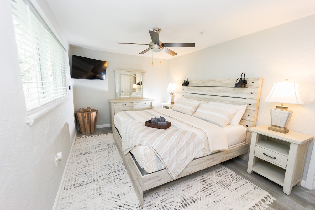 全新套房,带洗衣机,位于河畔,距离海滩1.3英里,可住4人
