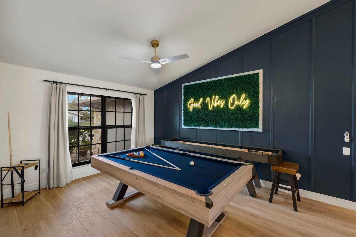 -5 min to Downtown Cape/10 min to Yacht Club Beach, 20 min to Causeway Beach, 25 min to Ft Myers & Sanibel Beach -Tropical fenced backyard w/ pool, hot tub, gas firepit, swing chair, hammock & Blackstone grill -Beach essentials, boogie boards, umbrellas, beach wagon, cooler & chairs -Board games, ping-pong, corn-hole, darts, 2 kayaks+life jackets -2 Beach Cruiser bikes + helmets -Relaxing enclosed covered patio + string lights, neon sign & grass wall -Canal access for kayak launch 5 min away