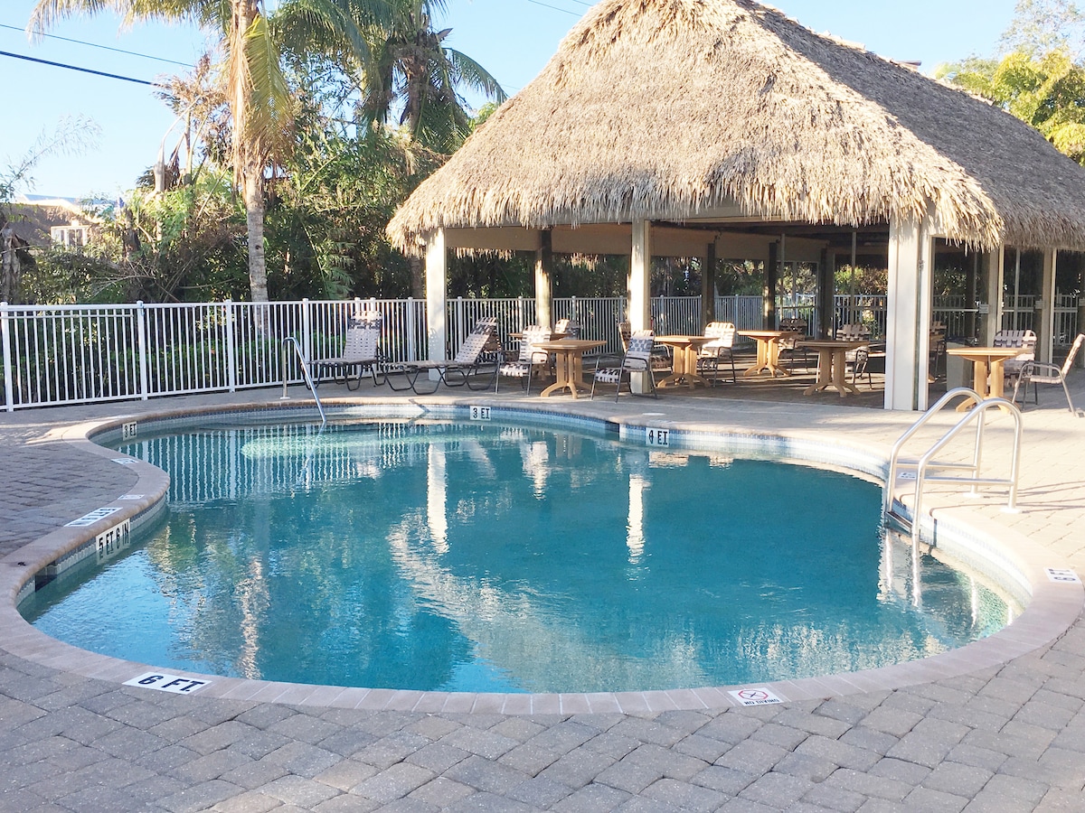 Welcome to the Pelican Suite! Secure, private entrance, king bed, outdoor kitchen and patio. This suite is separate from the upstairs main house. Adults only. King bed, ensuite private bathroom with shower; AC. WiFi, cable, TV. Exclusive use of ground floor screened guest lanai: kitchen, fridge, BBQ. Beautiful gardens, small/secluded heated pool. Free parking. The Pelican Suite is ideal for a relaxing no-stress break in the sun!