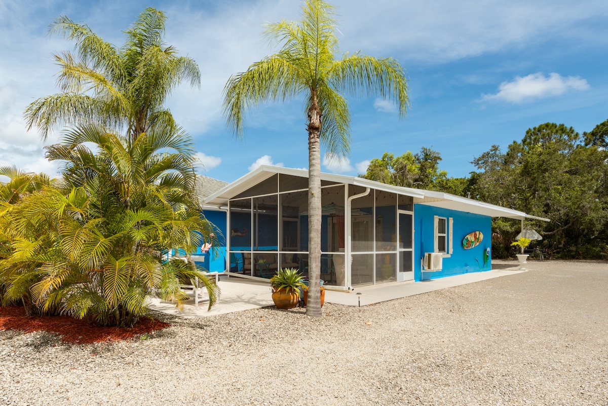Escape to our charming private guest cottage, just 1.5 miles from Bonita Beach! This updated studio comfortably fits 2 guests and features a king bed, a fully equipped kitchen, and a large screened-in lanai. Enjoy modern comforts with a coastal vibe, complete with beach bikes and a private entrance. Perfect for a quiet, relaxing beach getaway in a safe neighborhood.