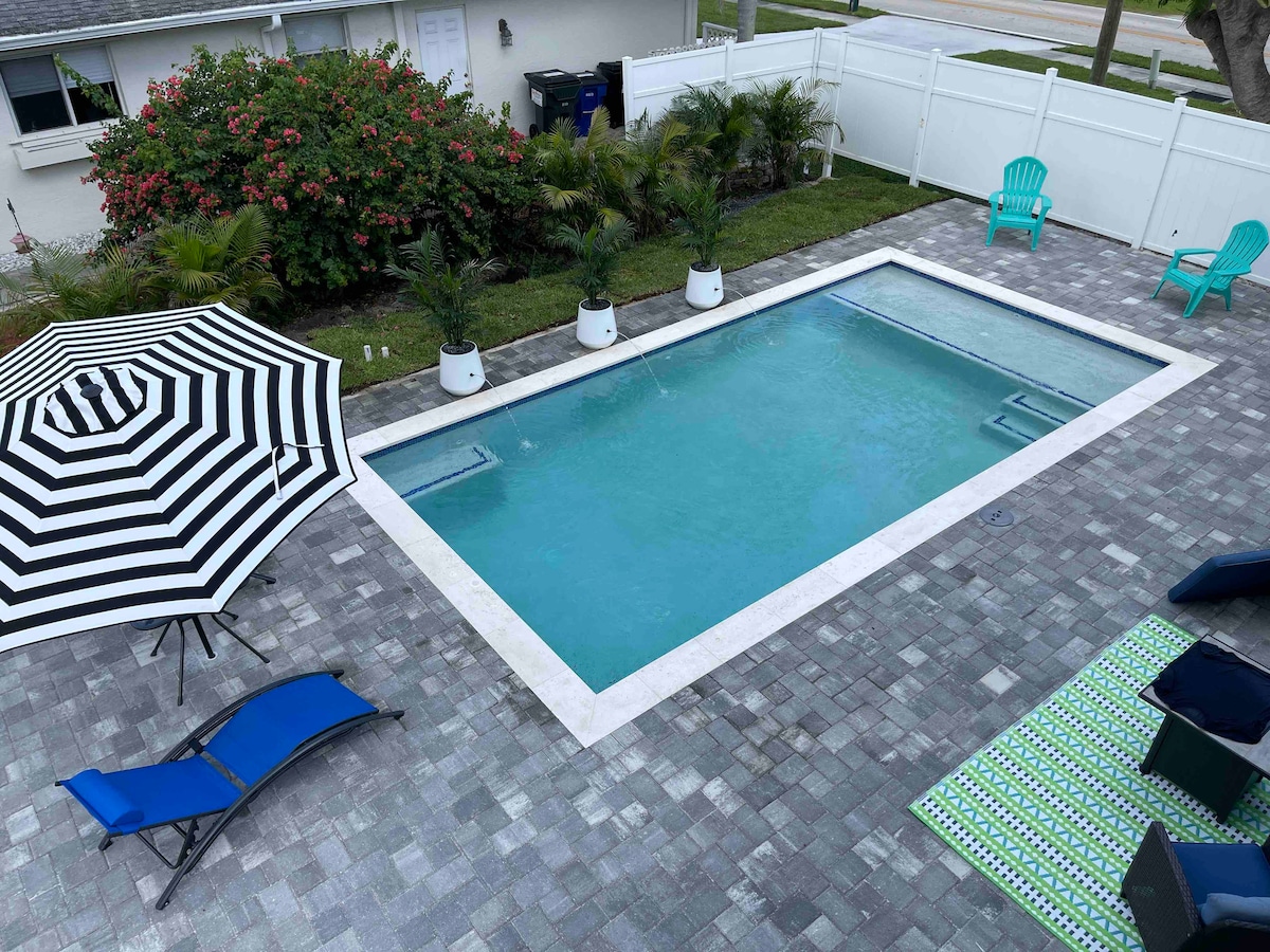 A relaxed, easygoing home designed for Fort Myers Beach living. A 3-bed, 2-bath retreat that sleeps 6, located at the end of a quiet street, just 3-minute stroll to Fort Myers Beach. Features include a private heated pool, outdoor seating, grill, outdoor shower. Walkable to Snook Bight Marina, restaurants, Publix, and the nearby trolley transportation.