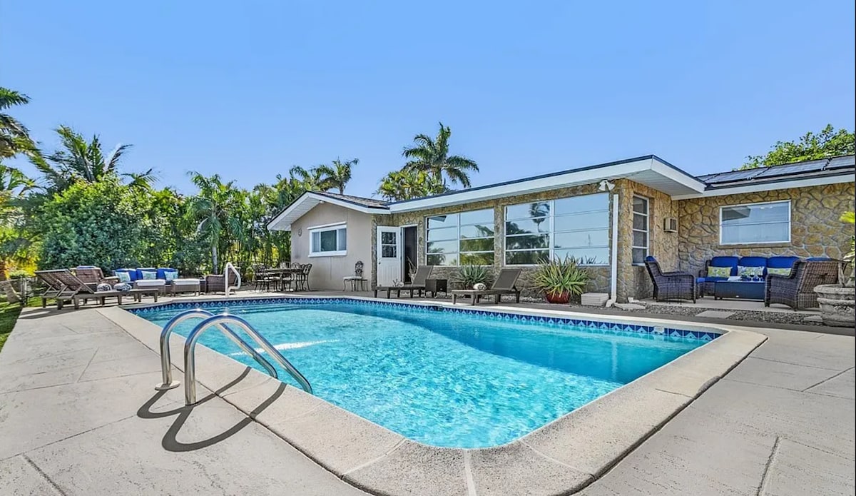 Welcome to Fort Myers Beach! At the Coconut Shack, enjoy an AMAZING SALTWATER POOL with sun on the lanai all afternoon. Grill out, relax, or head down to the BEACH - beach gear included! AMAZING outdoor KITCHEN/BAR. Rent a BOAT and park at the end of the street and WALK to the house! Fresh coffee is stocked before you arrive, and you're just 20 mins from the airport. Everything you need, nothing you don’t—just sunshine, water, and pure relaxation.