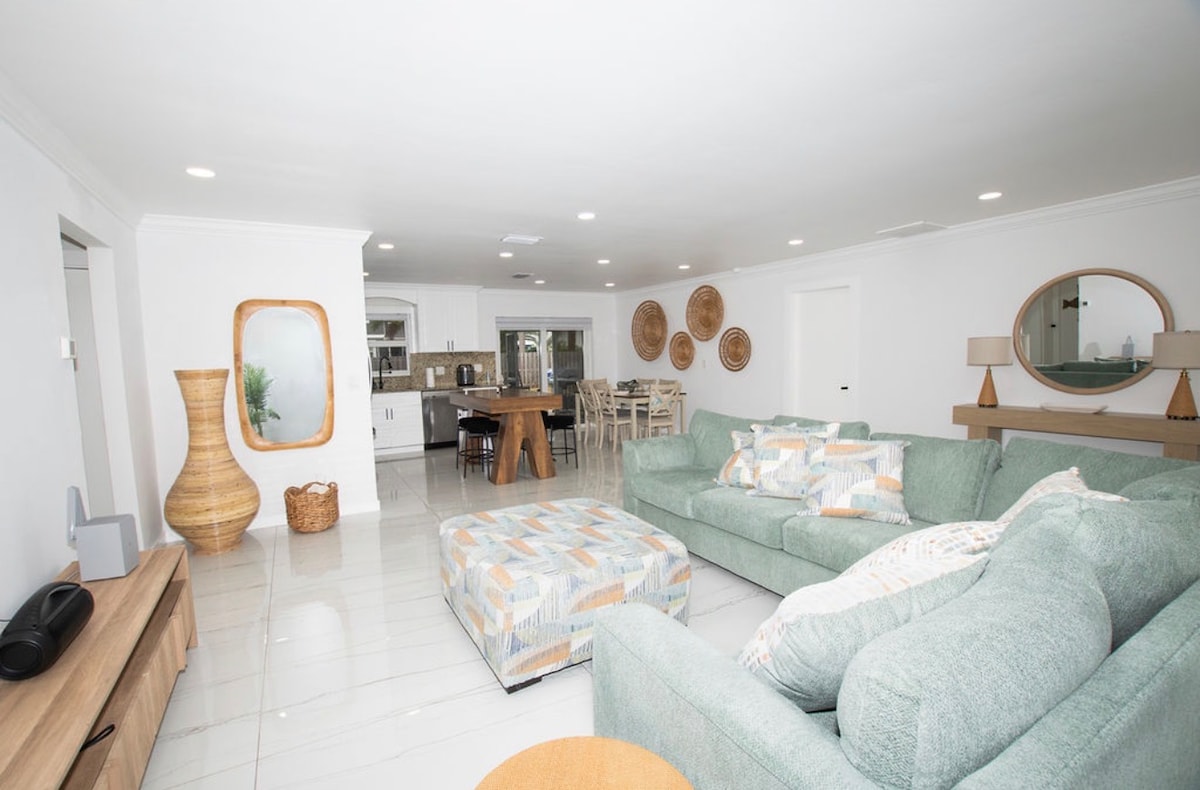 Casa Vivir la Vida is a newly renovated home with luxury upgrades to ensure you with the most relaxing stay. - Heated Pool with Retro Design - 15 Min to Vanderbilt Beach area - 15 Min to Mercato Shops and Restaurants. - Designed for Families - Pet Friendly - Designe for up to 10 people, 3 bedrooms, 2 bathrooms, 5 beds and a futon - Free Parking - Laundry In Unit - Fully Equipped Kitchen - Huge Backyard with Gazebo. - Fast Wifi - Residential Neighborhood. - Barbecue Grill - 24/7 Available Hosts