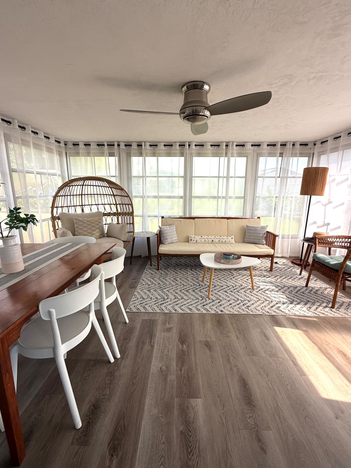 Your family will be close to everything when you stay at this centrally-located place. Stylish, yet comfortable - You have access to an additional spacious sun patio, a washer and dryer, and ample back and front yard. 10 miles to the beach, biking distance to Historic Downtown Fort Myers, this home is a renovated blast from the past. Terrazzo floors throughout kept the original Florida charm. The most peaceful neighborhood with walking distance to a restaurant with indoor/outdoor dining.