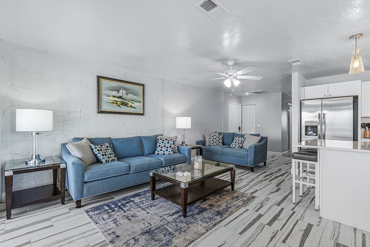 "Come relax by Florida's best beaches and sunsets—no damage from Hurricane Milton, and power/internet are on! This beach-style vacation home is minutes from Ft. Myers Beach and 15 minutes from Sanibel. You'll be spoiled by beach choices and amenities that make you feel like you're in paradise. In the evening, hop on the trolley to watch the sunset, enjoy cocktails, and the best beachside seafood. Just bring your sunglasses & flip flops. Forgot something? Shops are a 5-min walk."
