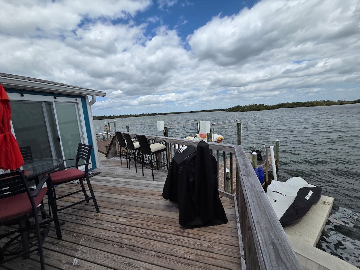 This picturesque Airbnb is a hidden gem nestled along a canal, one minute boat ride to the Caloosahatchee River. The living room, bathed in natural light is perfect for taking in the scenic views. The spacious bedroom has a king-size bed, ensuring a night of blissful rest. The full kitchen is equipped with all modern appliances. Close to Sanibel & Fort Myers Beach. Bring your boat & dock it on the seawall, ready to set sail whenever your heart desires. Book now - your coastal paradise awaits!