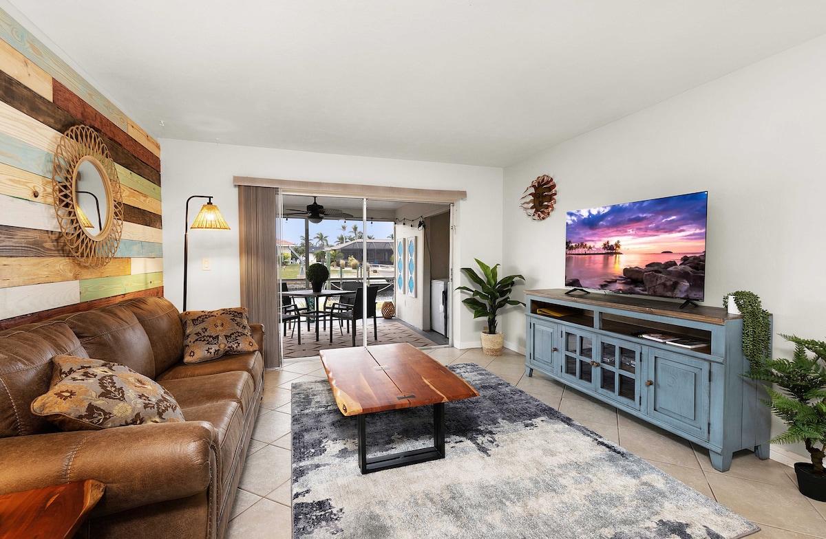 Escape to this modern 3-bed, 2-bath Cape Coral waterfront retreat featuring a versatile den with a workspace and pull-out couch, plus a private heated pool and spacious outdoor lounge. Close to popular restaurants, the Pine Island Road shopping corridor, and quick access to Veterans Parkway, you’re perfectly positioned to explore Cape Coral and beyond. Bright, stylish interiors make relaxing effortless—your Cape getaway awaits!