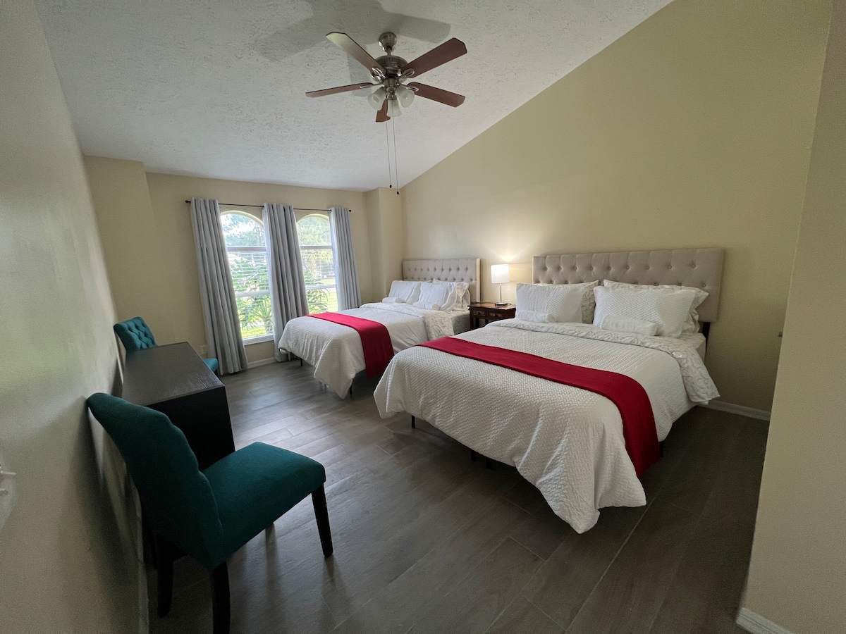 Spacious 3 Bedroom home with a private screened in heated pool. Outdoor shower. A split floor plan offers a Huge Master Suite with walk in closets, private bathroom including a jacuzzi tub. Master includes 42 inch TV with DVD. Second Bedroom has a Queen and a 32 inch TV. A second full bath off the Queen Bedroom that also provides access to the pool area. The third bedroom has two full beds w/ 32 in TV with XBOX. All TV's are Smart TV's. For families with a little one we also have a pack & play.