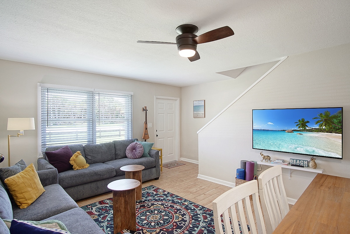 Enjoy a 2 bedroom, 1.5 bath two-story townhouse w/ a private patio at the thoughtfully designed Island Bungalow Blue. Bike or walk to Ft Pierce Inlet State Park - best beach on the Treasure Coast. Restaurants, kayak rentals, boat launches, surf lessons, CVS, Publix, and downtown Ft Pierce are all at your fingertips Features: - Patio - Beach chairs & towels & umbrella - 2 bikes & helmets - tennis racquets - Laundry & dishwasher - Smart TV - 2 parking spots