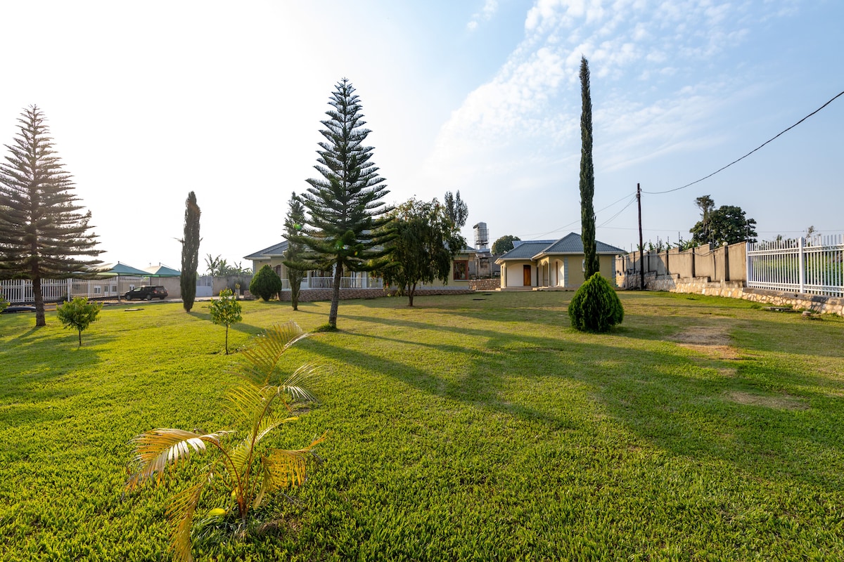 Rental is for the full property; we now have national electricity and piped water, power sockets, fridge, microwave, etc, and a good phone network. Two ensuite bedrooms, doubles plus king sofa-beds, toilet/hot shower each room. Watch crested cranes, turacos. Swim the lake, walk to Fort Portal and round the lake, visit adjoining lodges, tour our indigenous forest, visit the rift valley. For extra guests ask for the tent (garden campers shower/toilet available). For pre-teen children, no charge.