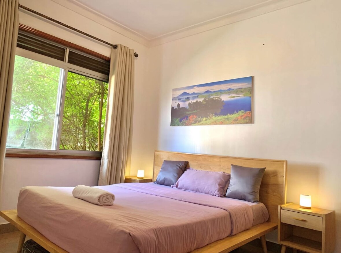 Oman Apartment is a stunning rooftop residence overlooking the breathtaking Mountains of the Moon and the vibrant skyline of Fort Portal City. With sweeping views of the River Mpanga below, this fully furnished apartment offers two spacious bedrooms, a modern kitchen, and a stylish living room that opens onto a private balcony. Guests enjoy direct access to the rooftop Kirungi Healing Garden, a serene space perfect for relaxation, sunrise views, and peaceful evenings above the city.
