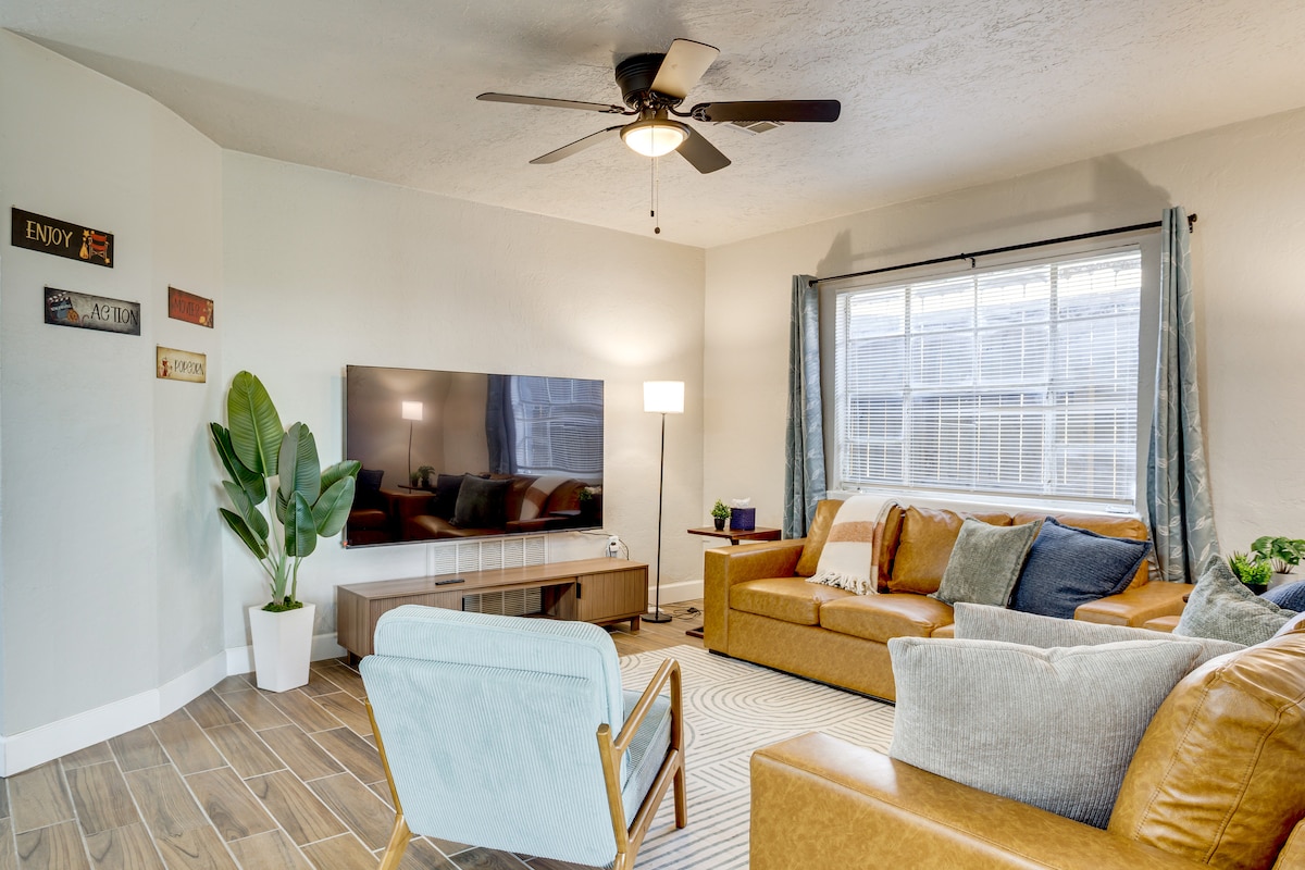 This is a modern and stylish place to stay while you are visiting. It has everything you could need in a clean and welcoming environment! Adjustable base beds! 3 massive TVs, brand new appliances, totally remodeled home. All in a safe and secure area! Perfect desk area for work, comfy couch for relaxing, and a gourmet kitchen with new pots/pans, dishes, and utensils! Close to everything- centrally located. Good restaurants!! Why not be the first to stay in this modern hideaway?!?