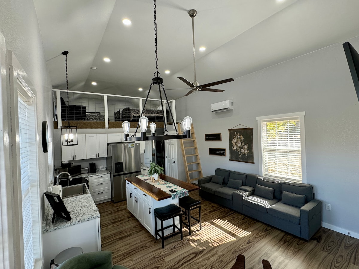 Enjoy this unique stay by sleeping in a cozy loft. Fast Internet 100Mbps. Climb library ladder to sleep in King size mattress in loft over looking the living quarters. Living quarters includes sofa bed that can sleep two, table, refrigerator, microwave, coffee maker. Beautiful wood finishes and decent size bathroom. Centrally located on Rogers Ave close to downtown. Suite has it’s own parking concrete pad. Guest suite is by our house, fence separating us. Pets MUST be added to guest list