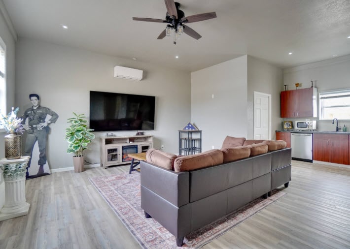 Centrally located on the edge of the Belle Grove Historic district downtown. Totally remodeled while preserving all of the vintage charm of this stylish 60s-era duplex. This listing is to rent the entire downstairs unit of a duplex. Beautiful and well-stocked kitchen. 1 bedroom with a large king bed. A workspace for digital nomads and a large 65" TV for hanging out in the living room. Laundry room with washer & dryer. Come relax and enjoy!