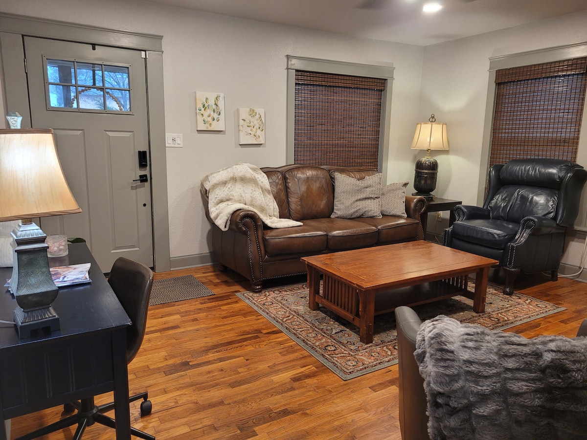 For your overnight stopover, for attending events downtown, for your business or pleasure trip, you will love the convenience, comfort and amenities offered during your stay at this remodeled 2 bedroom cottage! Located in a quiet, walkable neighborhood on the edge of the Downtown district. Walk to over 10 restaurants, shopping and all downtown attractions! Dog friendly and convenient parking in front and rear.