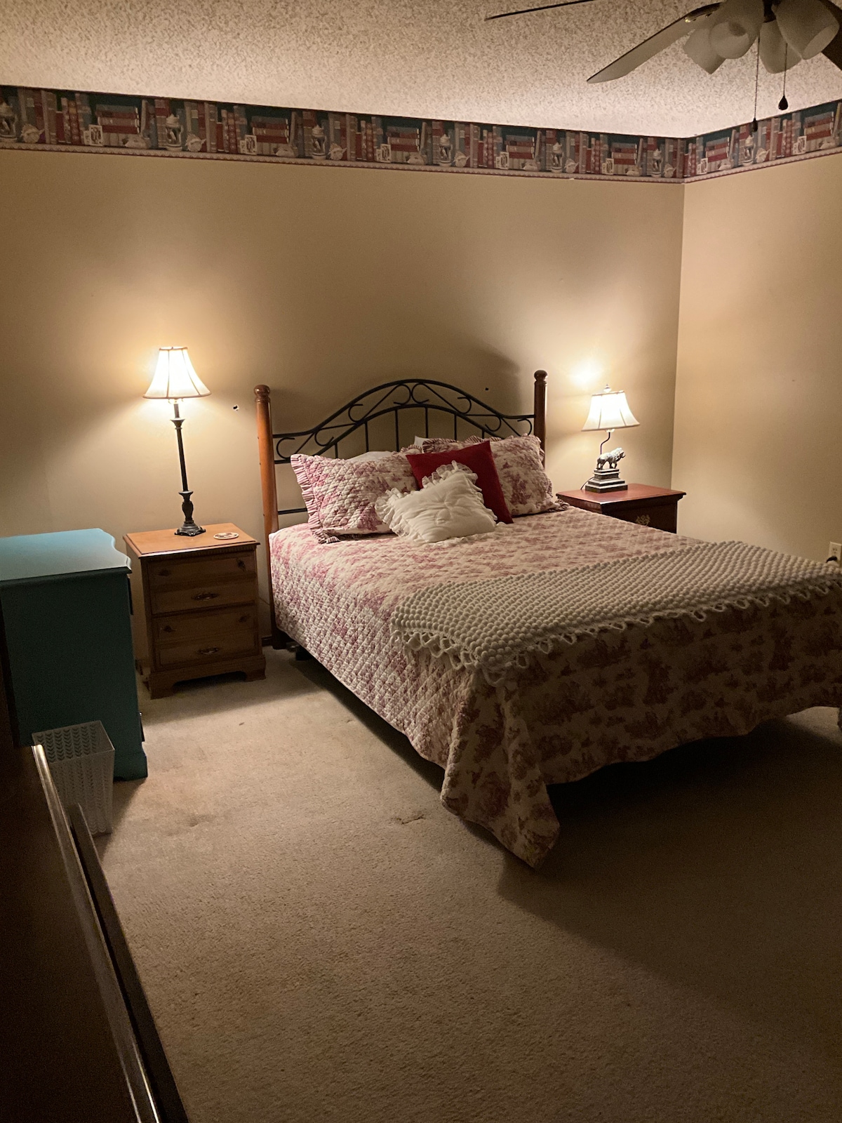 The cottage is cozy and comfortable. It is 980 square feet manufactured home. It has been renovated, new laminate floors. Common space and kitchen are open and spacious. New 50 inch smart television & smaller bedroom Roku tv. Split bedroom floor plan. Master bedroom and bath one end. Smaller bedroom next to hall bath. Shampoo and body wash. Kitchen fully equipped for cooking. Spices and oil coffee maker K Cups and 12 cup pot, wash/dryer. Fenced yard pet friendly. High chair and pack n play