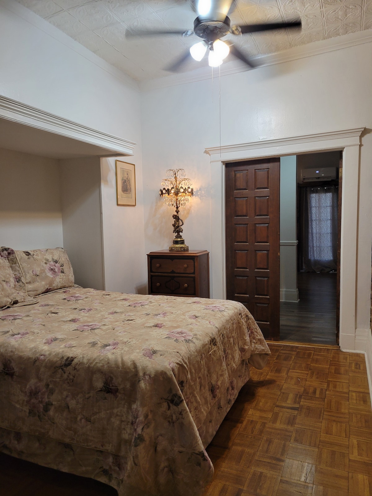 Once upon a midnight dreary, in my quest for lodging, weary, I stumbled upon a house, peculiar and eerie, With ebony floors that creaked and croaked, A grand old clock that tick-tocked and joked. Four bedrooms, where the bizarre did dwell, A dining room with tales to tell, A kitchen that conjured culinary spells, Two bathrooms, where the ordinary rebelled. Pet friendly, (no werewolfs), balcony and front porch, washer and dryer.