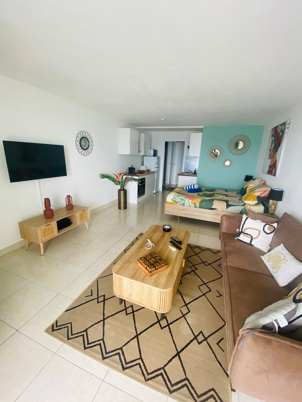 Large, high-quality studio, spacious and bright, confort plus with private bathroom. • Tastefully decorated, cozy and tropical decor • Cleanliness guaranteed • Swimming pool • Air conditioning • King-size bed • WiFi & TV • Equipped kitchen • Ground floor with garden and covered terrace • Prime location in a quiet and leafy residence, ideally situated. Close to the marina, city center, shops, restaurants, ferry terminal, promenade, and more.