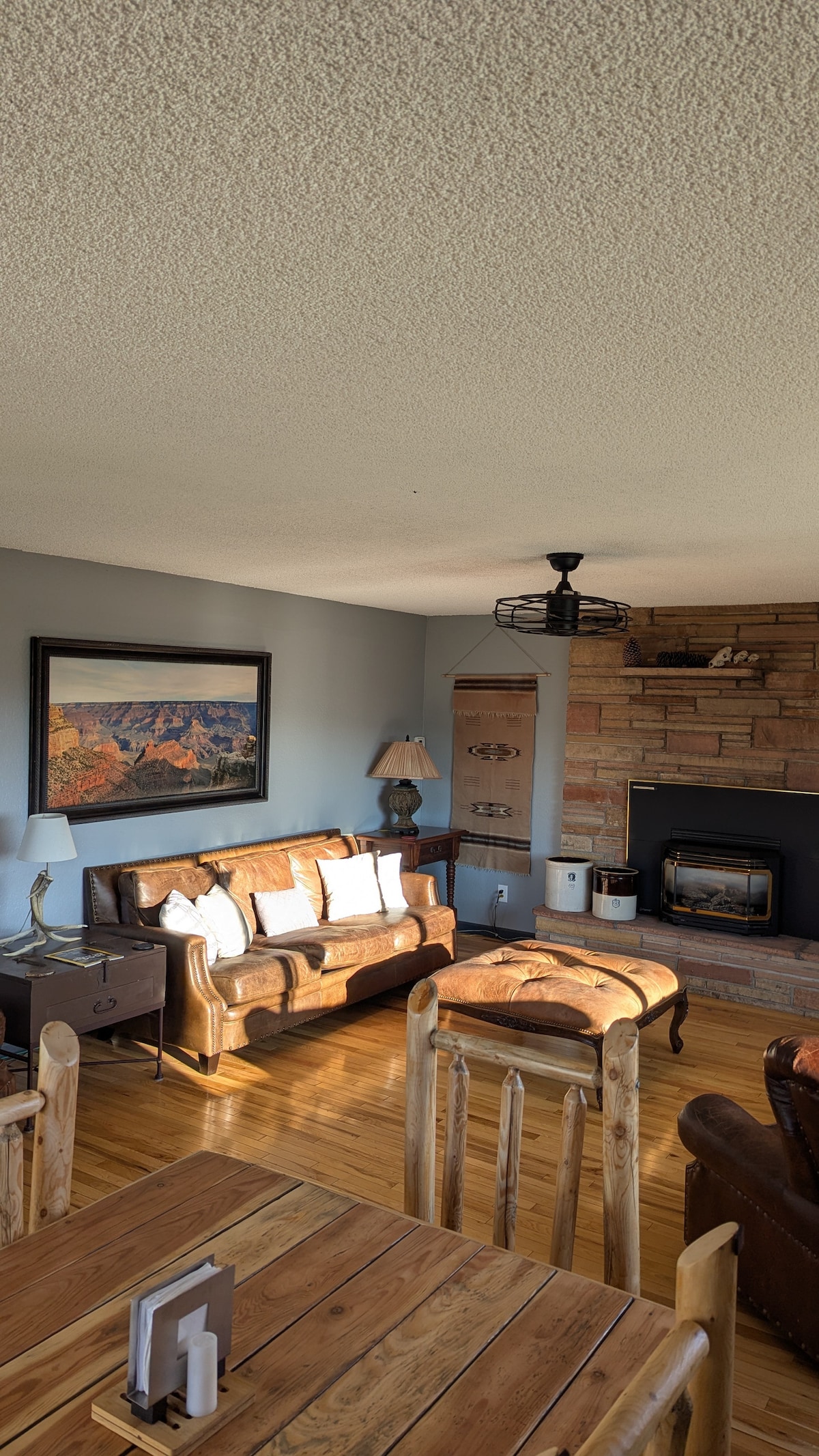 2 hours from Phoenix, our home has a huge 1,000 sq ft+ great room that's perfect for families or quiet get aways. It sits on 2 acres of natural country landscape in a very quiet part of northwest Flag. Our home is 1 min to Snowbowl entrance (entering the opposite way of traffic), 10 min to downtown Flagstaff and 1 hr to the Grand Canyon. The large front patio has a gas fire pit that faces the San Francisco Peaks and offers amazing views. Our back patio has a hot tub and no city lights.