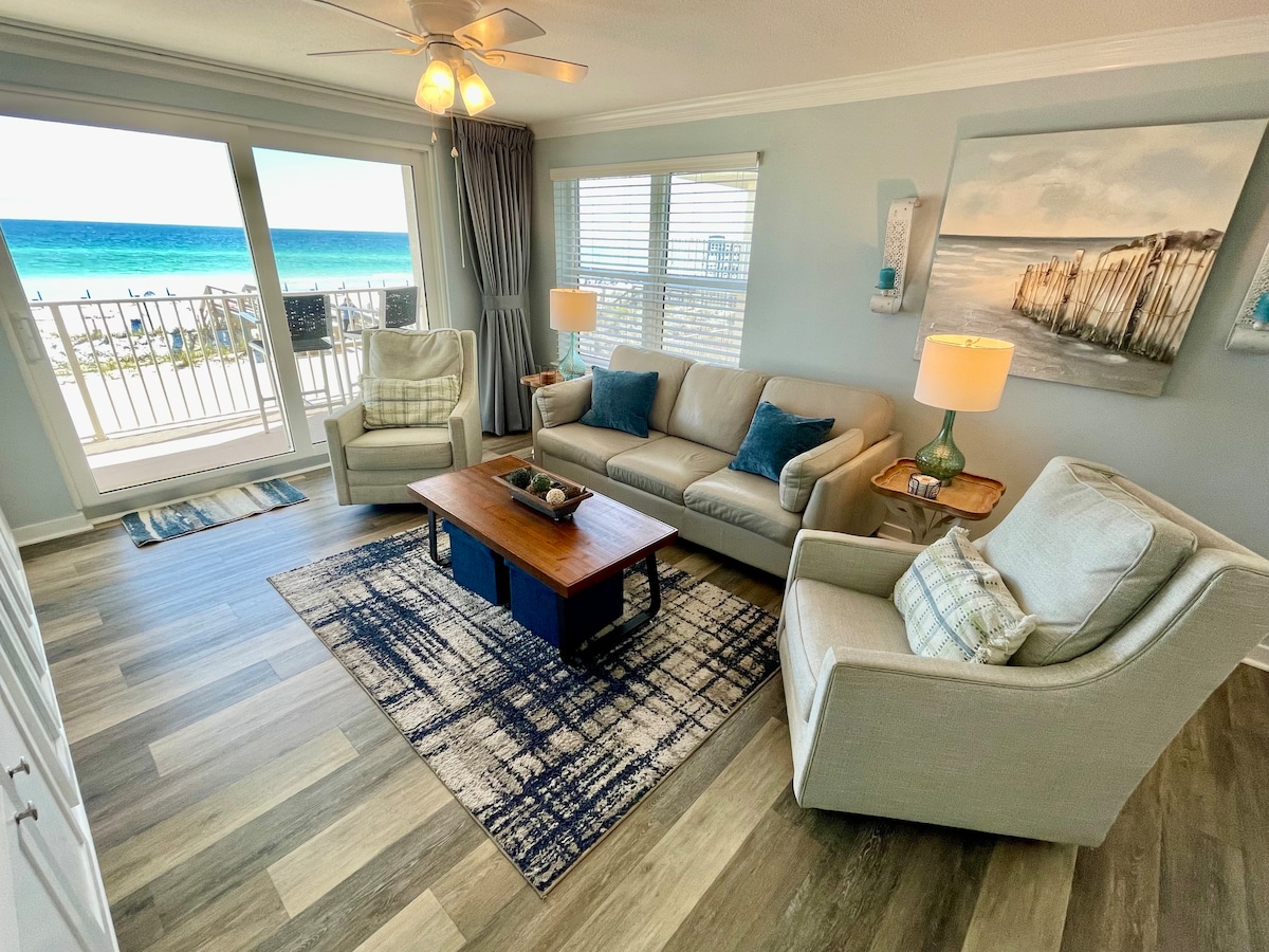 Welcome to “Sandy Thongs”, a completely updated, beachfront condo with a fresh new look, making it one of the most desirable properties on Okaloosa Island. Breathtaking sunrises, sunsets and gulf views await you. Sandy Thongs is equipped with everything you will need for your stay, including beach towels and beach service, which includes 2-chairs, and an umbrella setup daily on the beach March 1-October 31st. Need more space ask about our other unit, “Sunset Dreams”.