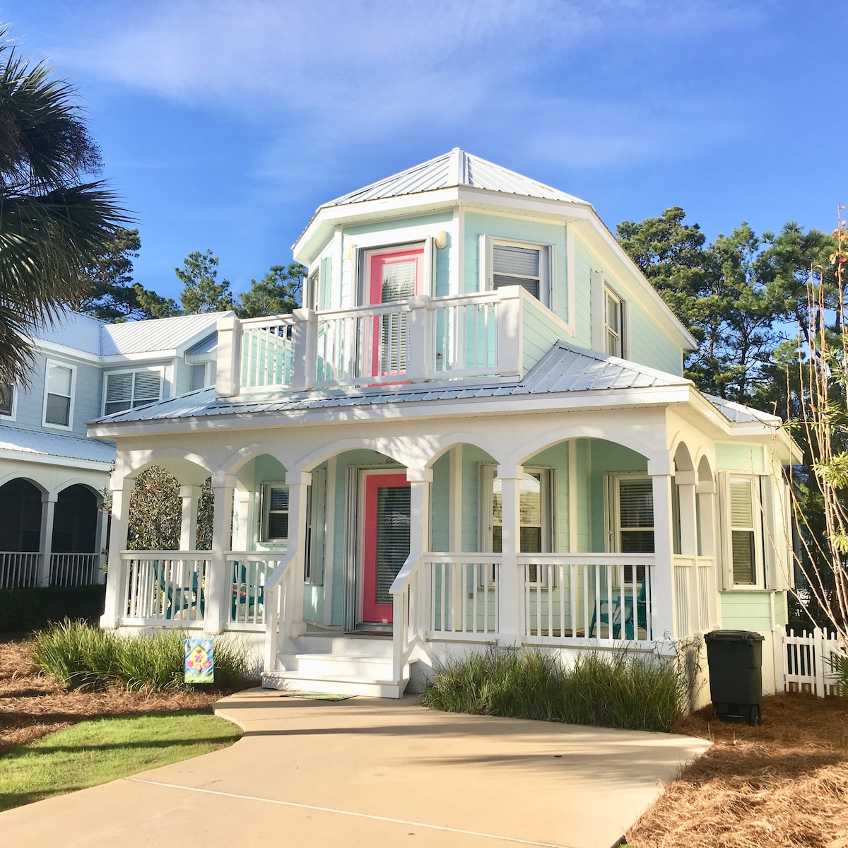 Welcome to "Just Darling" beach cottage off HWY 30A in Blue Mountain Beach. Closest Beach access is a 10 minute walk via a short cut path or 2 minute drive. Enjoy restaurants, shops, bike trail etc... close to "Watercolor and Seaside” communities. Home is sun filled and cozy with everything you would need for your stay, including a community pool up the street. Best of all, relax on the charming wrap around front porch or barbeque off the private porch off main floor back bedroom. ENJOY!