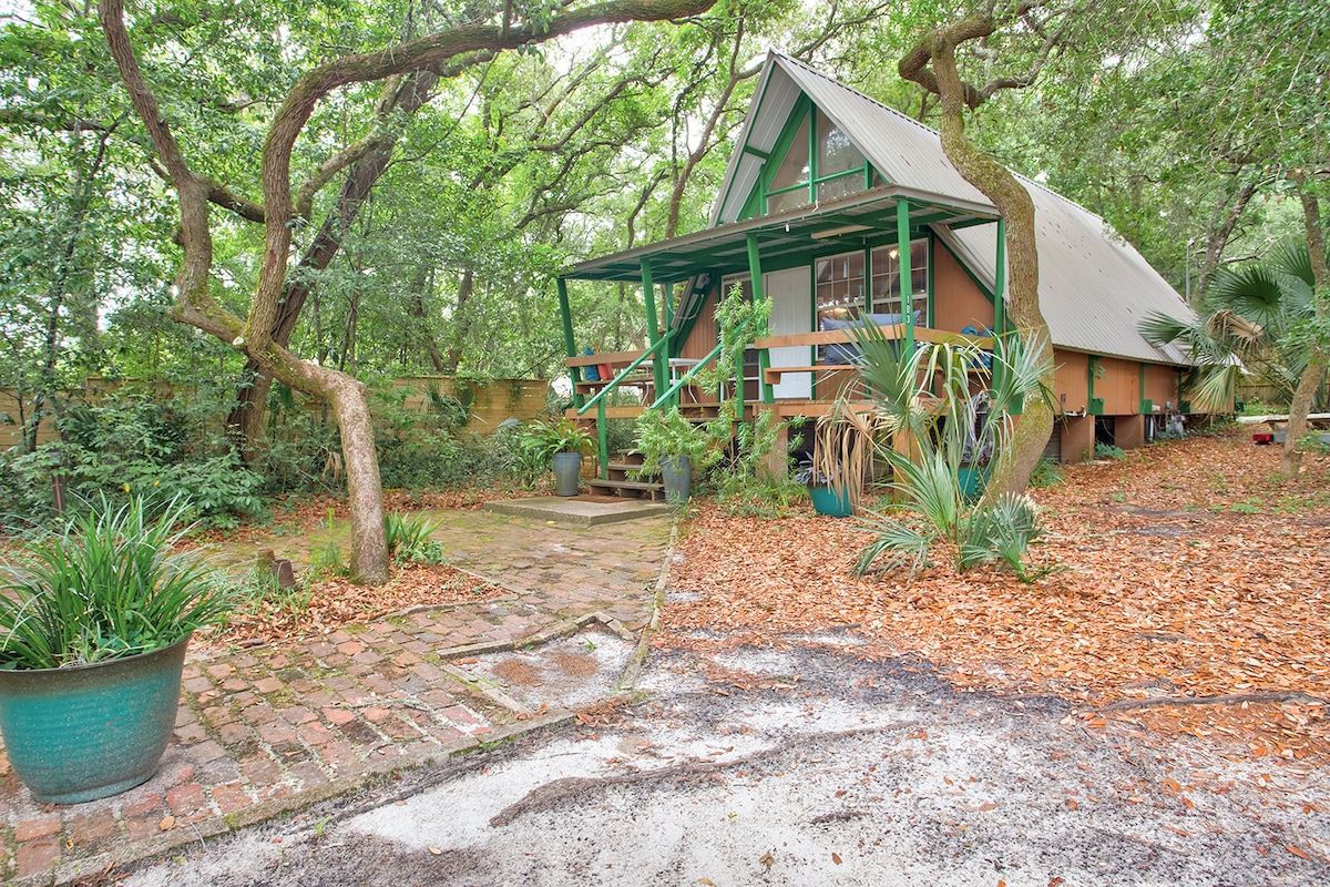 Our "Quirky" Cottage is just that!! If you want to experience "old Florida" come and stay with us in our quirky cottage nestled in old oak trees! It was originally built in 1960 as a camping cabin, it came in a box as a do it yourself kit! There are a few left around town - really unique and private space! Located just 5-10 minutes from the Okaloosa Island beaches and everything downtown Fort Walton Beach has to offer and just 15 minutes to Destin. (all depending on traffic!)