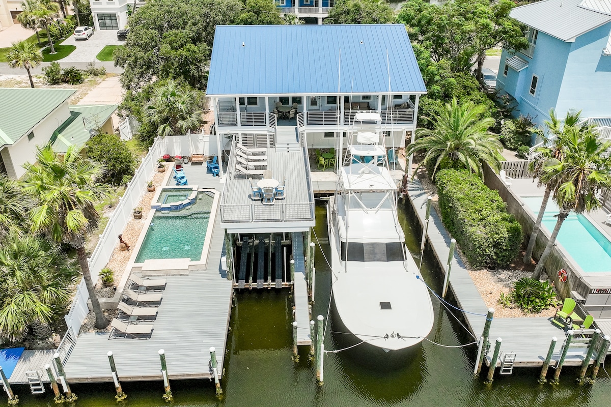 This beautiful four bedroom beach cottage is located in the exclusive gated community of Destin Pointe. The home offers a tranquil setting and unsurpassed amenities that include a private lakefront pool for relaxation and entertainment-perfect for sipping your evening cocktails while overlooking the lake, direct lake views for the multiple levels of decks, private beach access to the sugar sands of Destin, and three community pools (one with a hot tub and splash pad) for guests use.