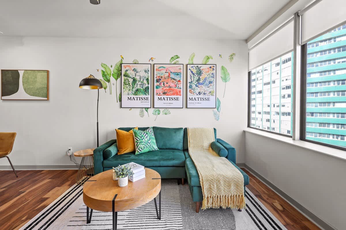 Bring the magic of the movies into your stay. This stylish Deep Ellum retreat features a private in-bedroom theatre setup, complete with a projector screen for cinematic nights in. Whether you’re streaming your favorite series, hosting a cozy movie marathon, or setting the vibe with music videos, the theatre space transforms your getaway into an experience. Located in the heart of Deep Ellum, you’ll be steps away from vibrant art, live music, dining, and all the VIBES!