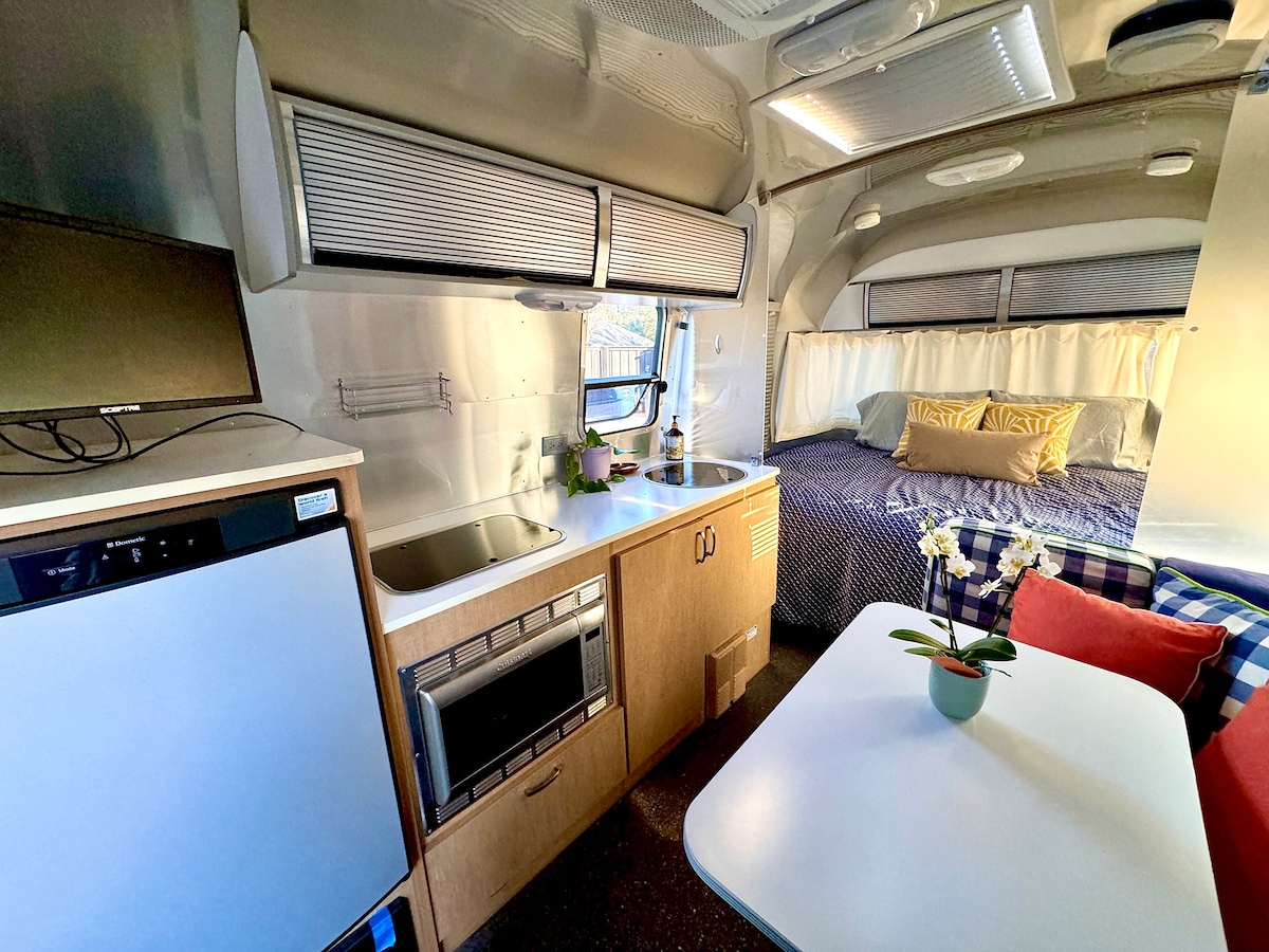 Our vintage ‘67 Shasta has been refreshed as a glamping BnB, but she’s more often used as a backyard sleepover haven, afternoon bbq cool spot, or after hours party pad. We still take her on the road camping, and more often to shakedowns, but most days she just idles in the backyard waiting for some magic to happen! Great for a couple, but I’ve listed it at 3, because that’s how many births it has for individuals (talking head to toe here), but you could cram 5-6 folks in and we don’t mind